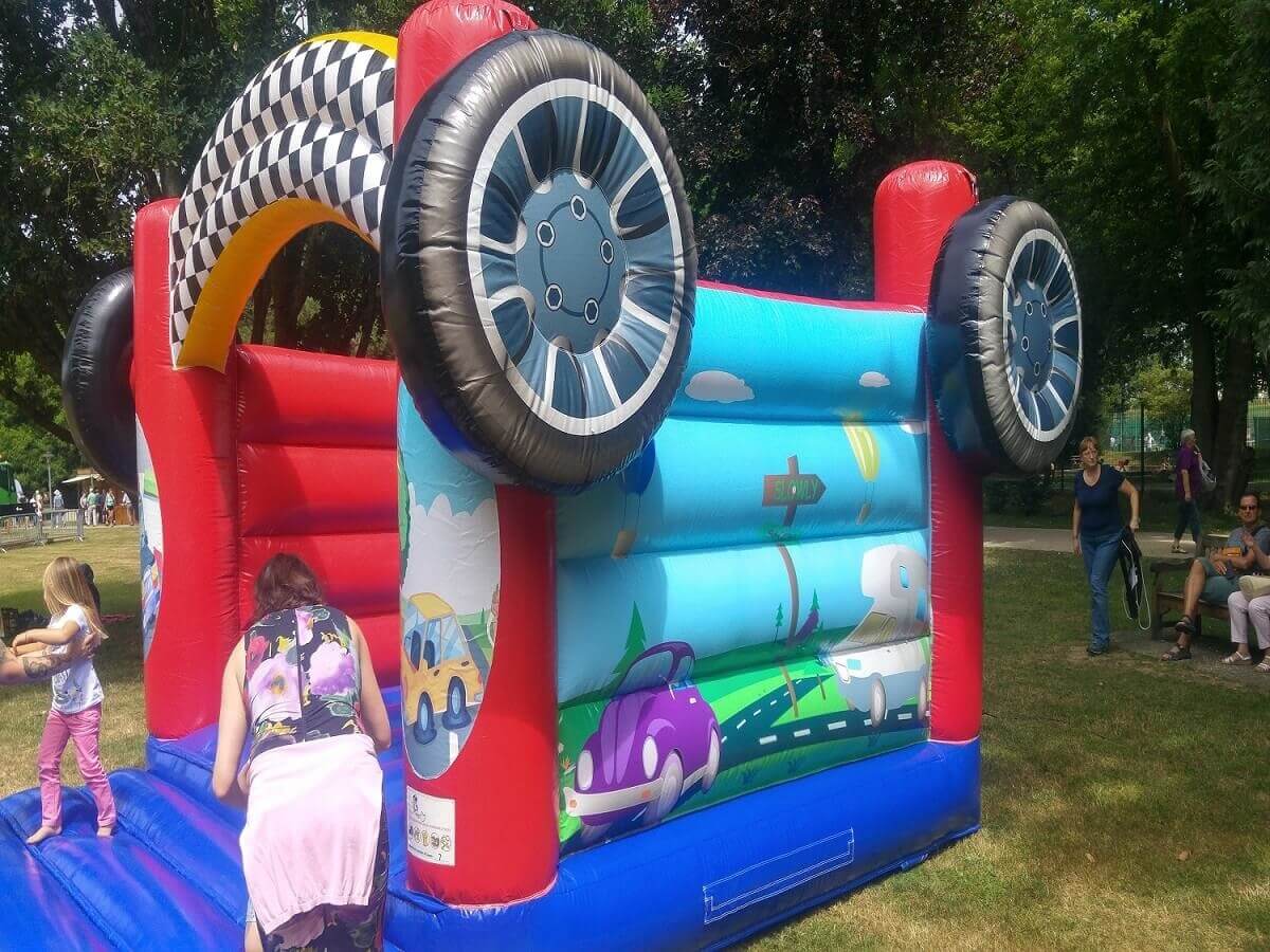 Ein ganz toller Hingucker ist unsere neue Hüpfburg Auto. Nicht nur für Kinder ist diese sehr farbenfrohe Hüpfburg geeignet! Diese Hüpfburg bietet ein Dach zum Schutz vor Regen und zu hoher Sonneneinstrahlung.