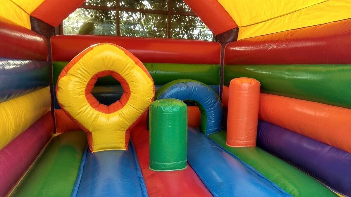 Hüpfburg Regenbogen mit Spielelementen mieten