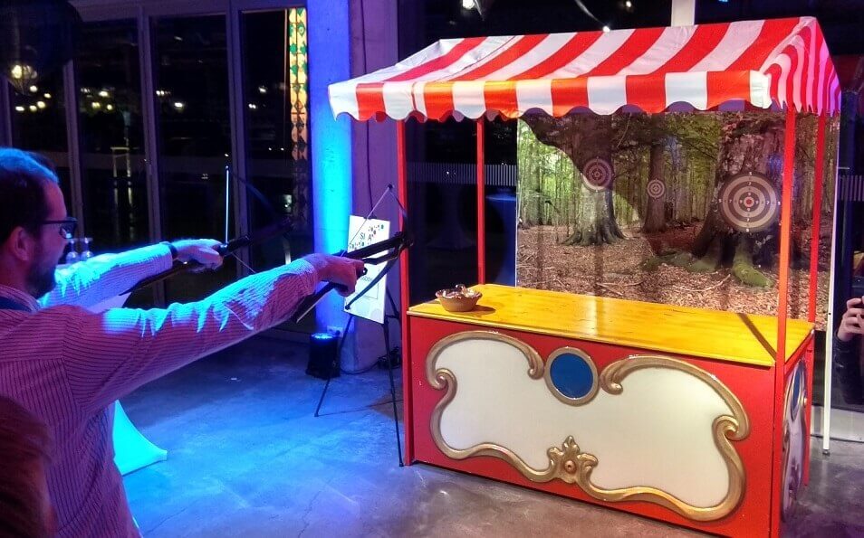 Armbrustschiessstand mieten im Nostalgie Look bei Arena der Wunder völlig ungefährlich und sicher. Sie schiessen mit ungefährlichen Saugnapffeilen. Das macht nicht nur den Kindern einen riesen Spass.