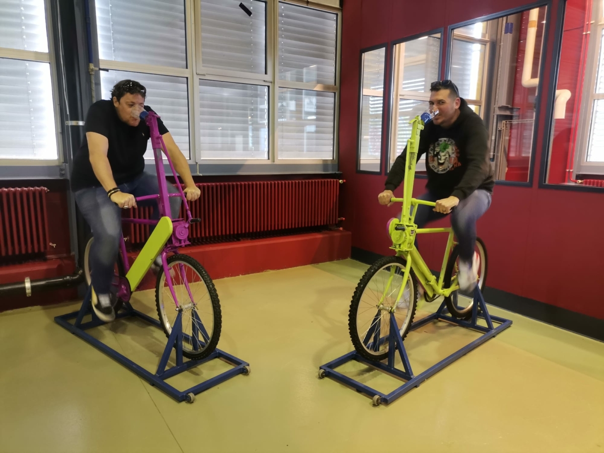 Wer radelt am schnellsten und kann zuerst sein Glas austrinken? Durch das Bewegen der Pedale hebt sich vorne das Glas auf Mundhöhe und fängt an sich in Richtung des Fahrers zu kippen. Bequemer geht es nicht! Wer zuerst ausgetrunken hat, ohne die Hände zur Hilfe zu nehmen, hat gewonnen.