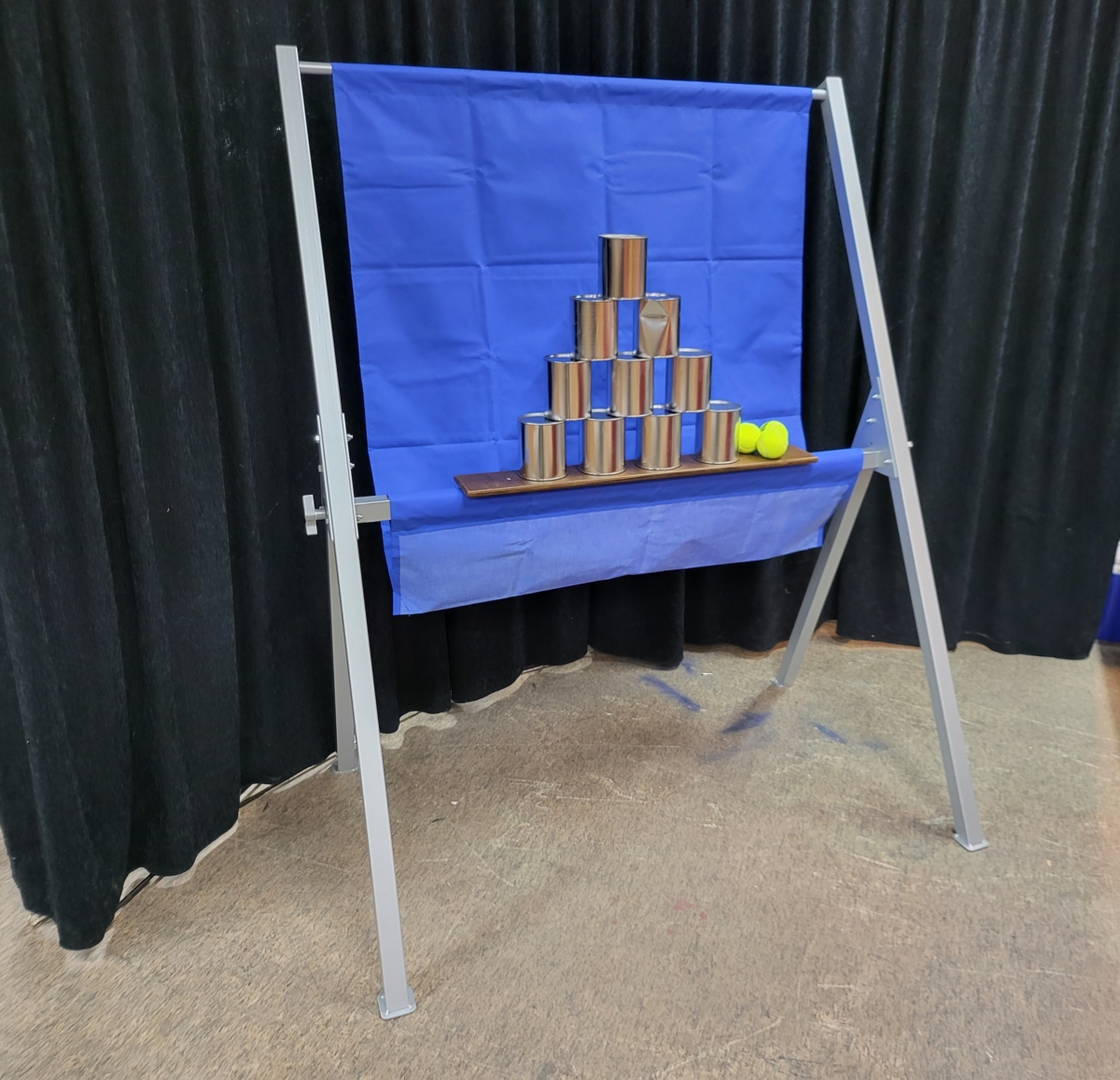 Lieferumfang: Gestell zerlegbar, 10 Dosen , 5 Bälle.