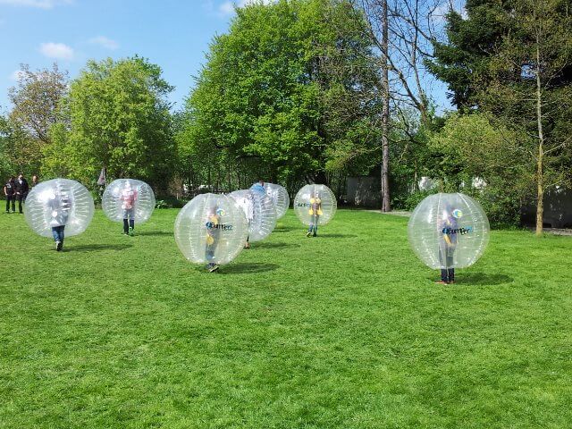 Bubble Soccer ist die neue Trendsportart, die auf jedem Event für einen hohen Spassfaktor sorgt. Die Spieler streifen sich riesige, transparente Bumper Balls (auch Bubble Balls genannt) wie ein Rucksack über. Kopf und Oberkörper sind dadurch vollständig bedeckt und nur noch die Beine schauen heraus. So können die Spieler den Ball wie beim normalen Fussball spielen.