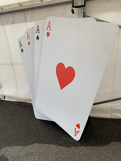 Fun Casino a la Las Vegas. Als tollen Blickfang haben wir hier XXL Spielkarten welche einach aufgestellt werden können und den Raum schnell mit Las Vegas Felling füllen.