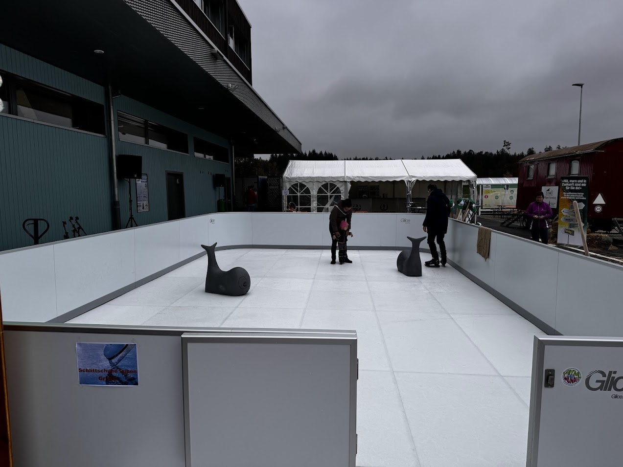Eine Eislaufbahn ohne Eis ist nicht nur innovativ und umweltfreundlich, sondern bietet auch mehr Freiraum in der Terminplanung. Denn sie lässt sich flexibel zu jeder Jahreszeit aufbauen und mieten, da sie keiner Kühlung bedarf.