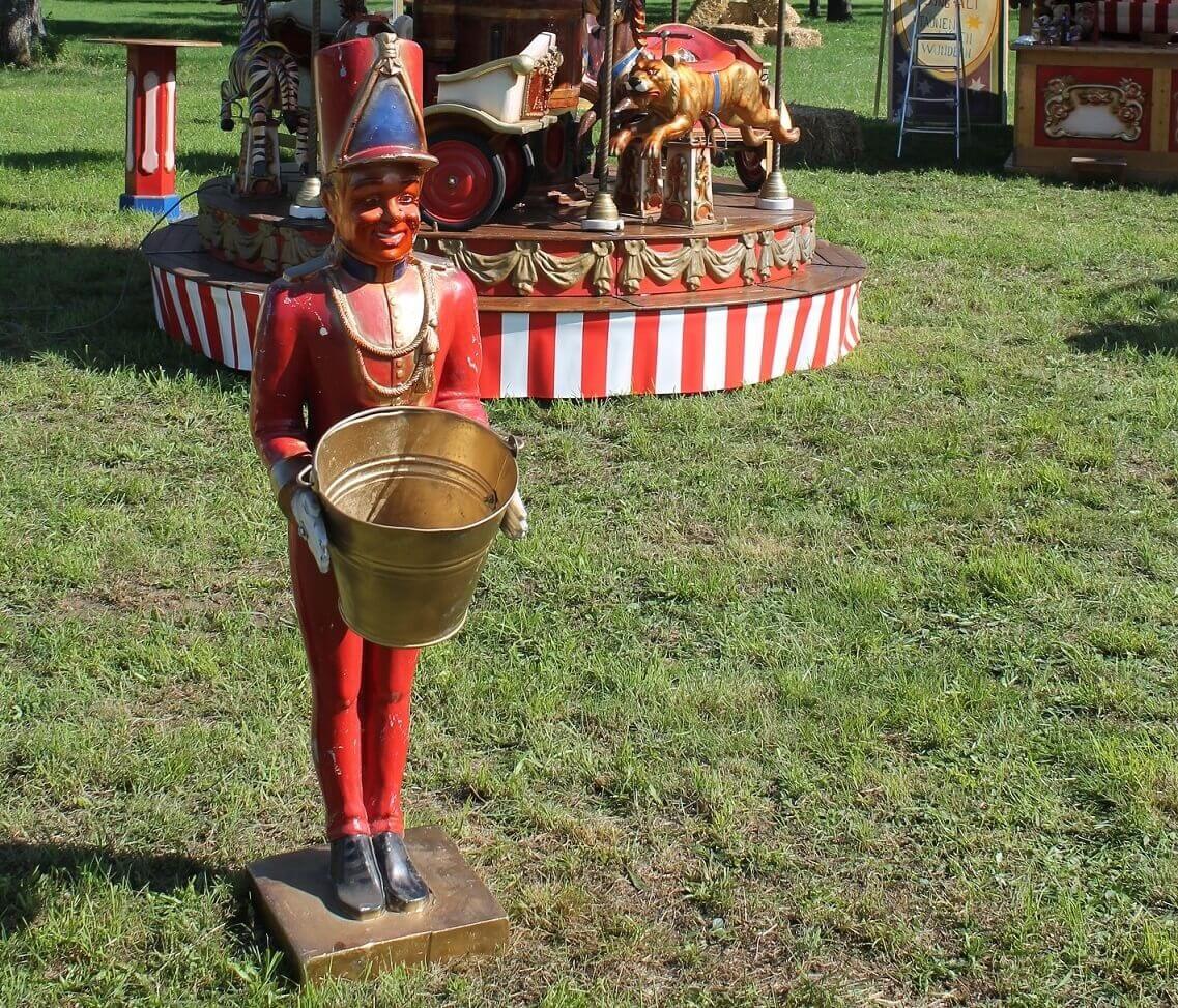 Lieferumfang: Deko Figur mit Eimer, roter Teppich, verschiedene Bälle.