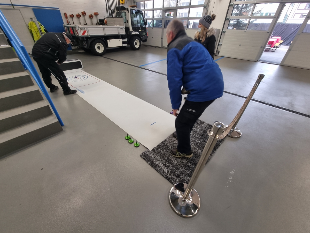 Das Fun Curling bietet Erwachsenen und auch Kindern eine riesen Freude. Dank der kleinen, leichten Stöcke auch für kleine Kinder geeignet.