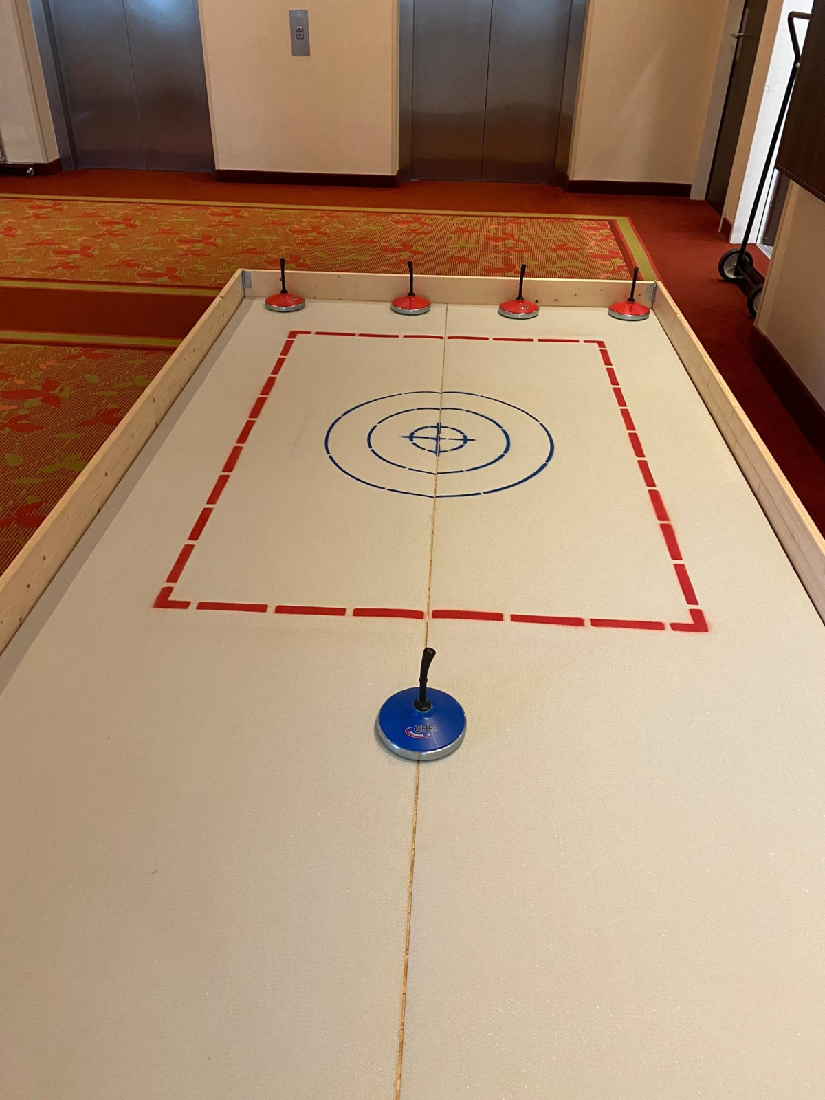 Das Fun Curling bietet Erwachsenen und auch Kindern eine riesen Freude. Dank der kleinen, leichten Stöcke auch für kleine Kinder geeignet.