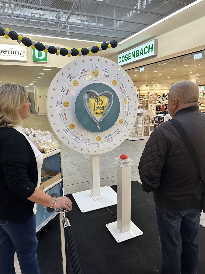Sichern auch Sie sich den Besucheransturm bei Ihrem kommenden Jubiläum mit unserem Eyecatcher dem elektronischen riesen Glücksrad.