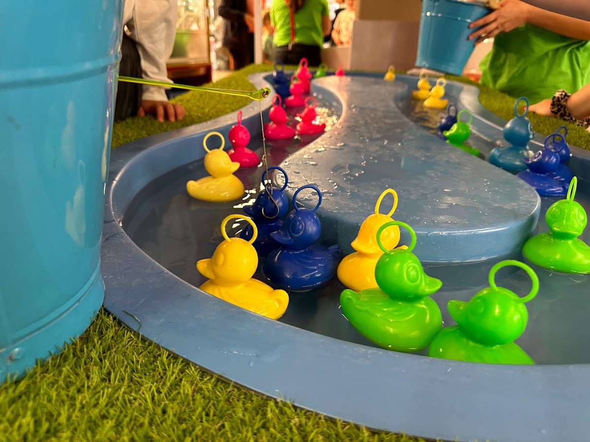 Lieferumfang: Marktstand, Entenangeln Einsatz, Angeln, Enten, Wasser.