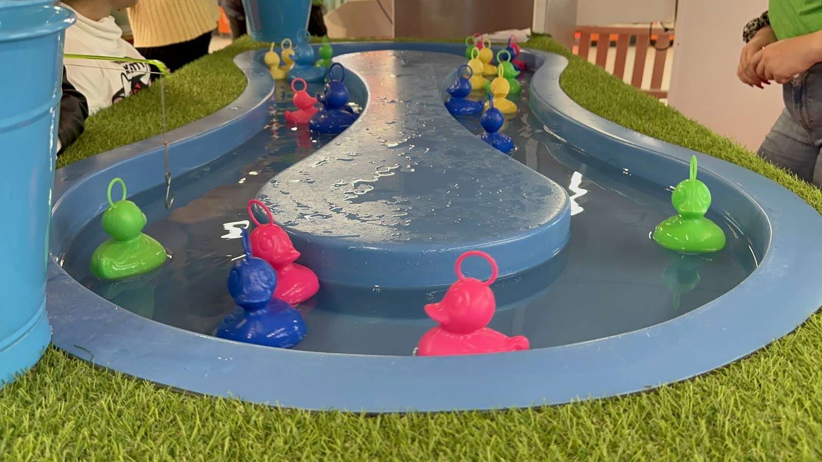 Sehr herziges Enten Angelspiel im Nostalgie Look. Entenangeln ist ein klassisches Spielvergnügen, das nie langweilig wird. Für die Kleinen ist es ein grosser Spass, die bunten Entchen aus dem Wasser zu angeln. An zwei Becken können hier bis zu 4 Kinder ihr Angelglück versuchen. Mit schöner Dekoration und Zaun.