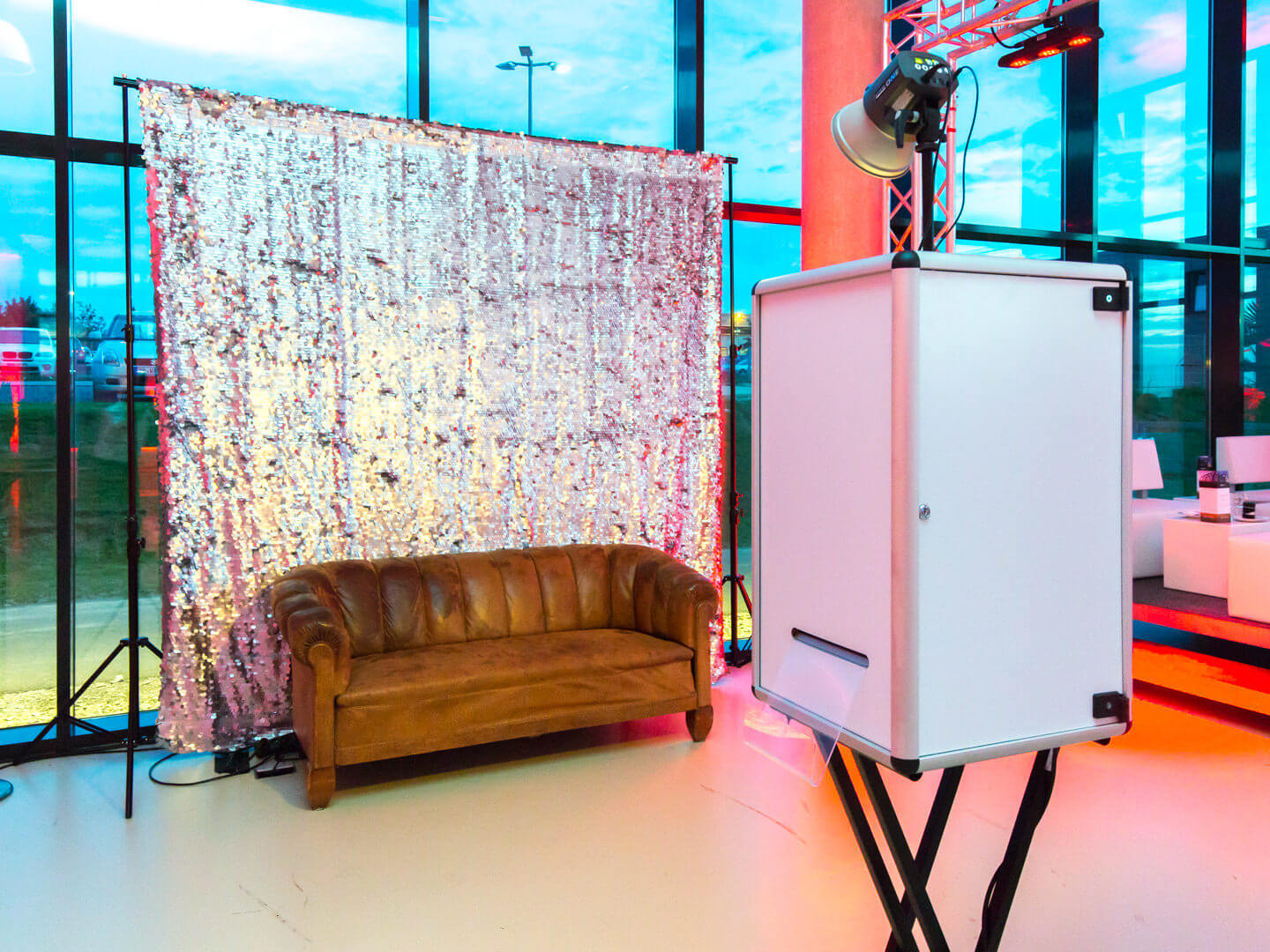 Unsere Fotobox hat auf der Vorder- und Rückseite eine umlaufende LED Beleuchtung. Diese sorgt für zusätzliches Ambiente. Diese LED Beleuchtung kann auch farblich auf Ihr Event oder Ihre Firma abgestimmt werden.