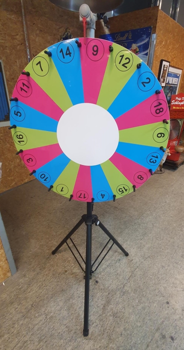 Unsere Glücksräder in verschiedenen Ausführungen eignen sich ideal für Gewinn- und Partyspiele. Das Glücksrad kann individuell beschriftet werden.
