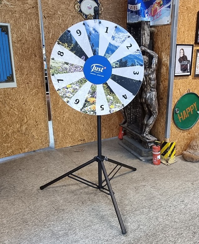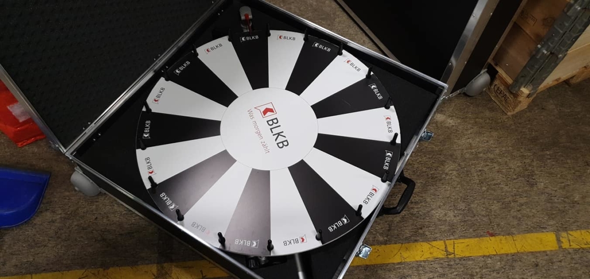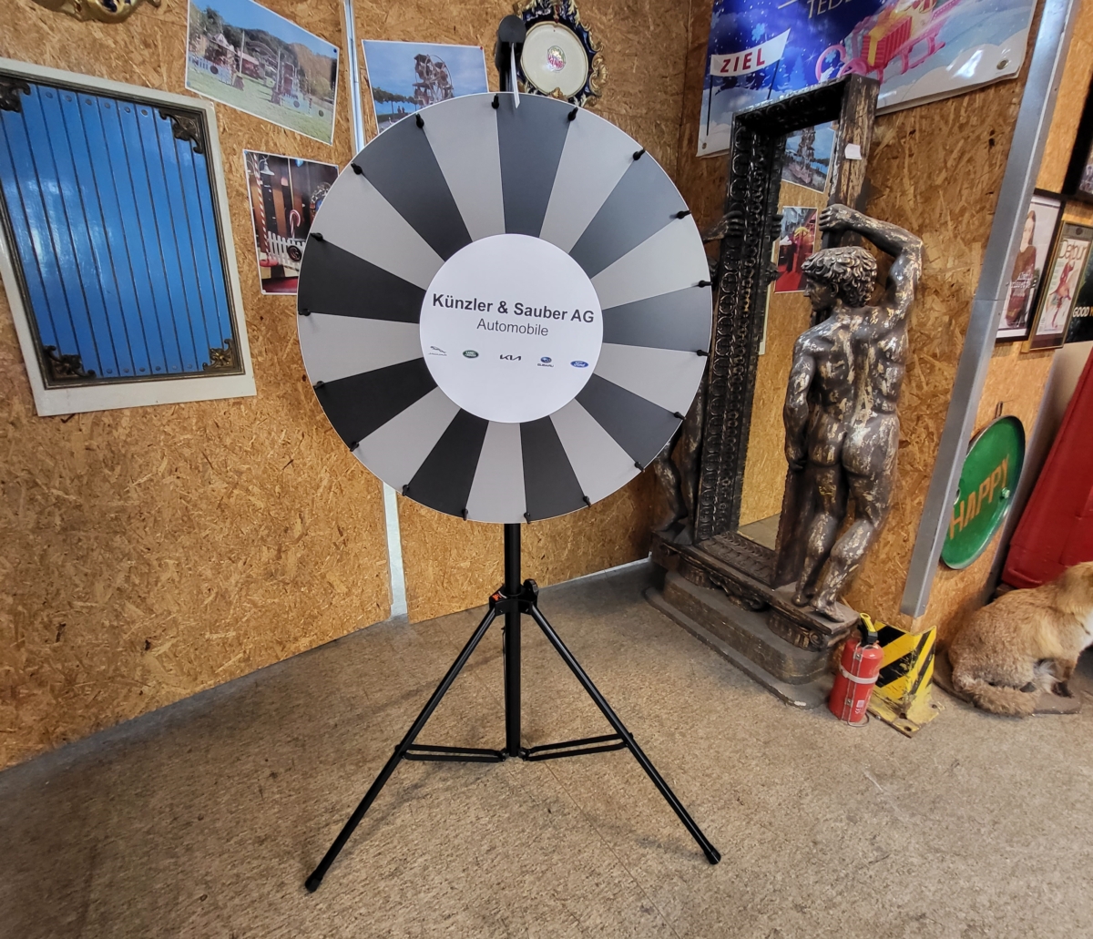 Der grosse Vorteil ist, dass wir Ihnen innerhalb 24 Stunden ein Glücksrad mit eigenem Brand ausliefern können!