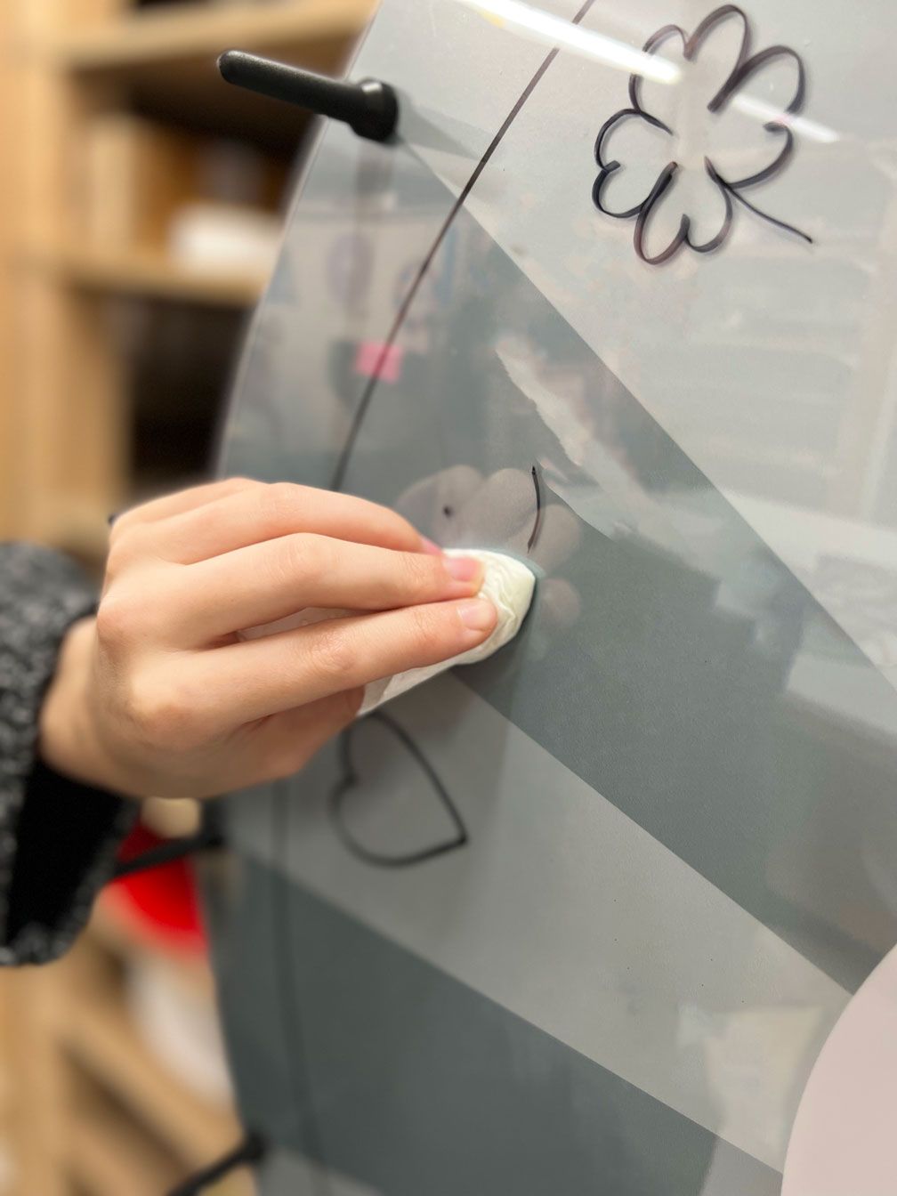 Der Druck der hochwertigen Integralschaumscheibe (robuster und nicht so anfällig wie Forex) wird in Niederhasli gedruckt und anschliessend in der Werkstatt Dietlikon weiter bearbeitet. Von Hand werden Löcher gebohrt und jeder Stift einzeln eingeschraubt. Somit made in Switzerland!
