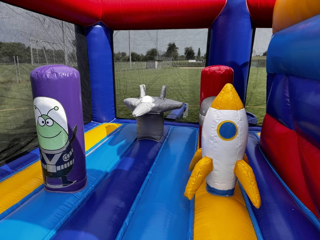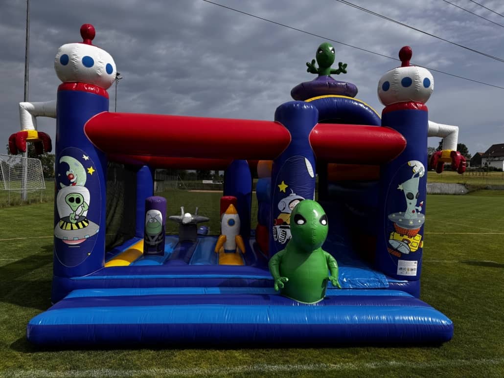 Dieses aussergewöhnliche Spielecenter ist sehr multifunktional! Die Hüpfburg Alien ist eine tolle Mischung aus Hüpffläche mit Hindernissen und einer Rutsche.