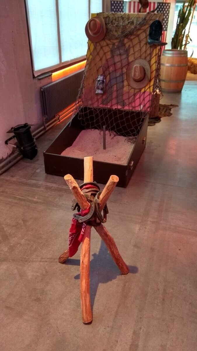 Das Hufeisenwerfen wurde ursprünglich in den Alpenländern erfunden, aber es erlangte seine internationale Bekanntheit durch den Western. Also: Ob Oktoberfest oder Rodeo Party, Hufeisenwerfen passt und ist ein Spass für die ganze Familie.