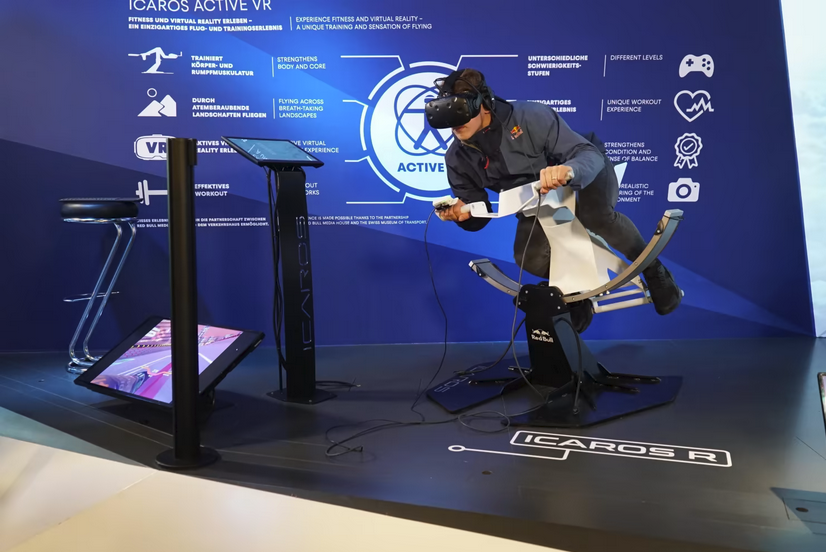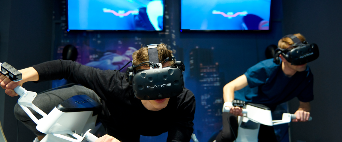 Der innovative VR-Race Icaros kombiniert ein High End-Trainingsgerät mit dem Trendthema Virtual Reality und ermöglicht es den Teilnehmern, mit vollem Körpereinsatz durch virtuelle Welten zu fahren.