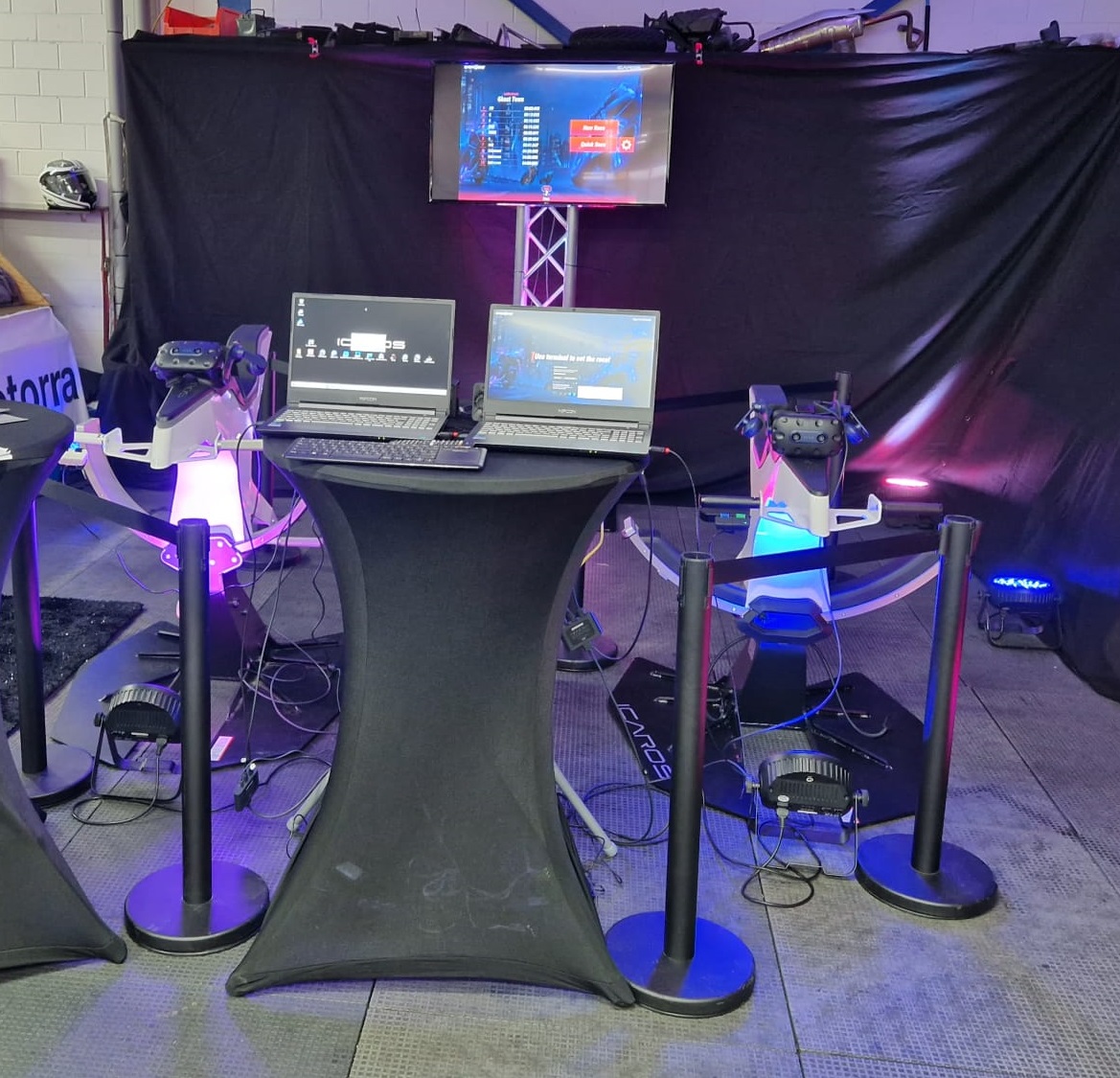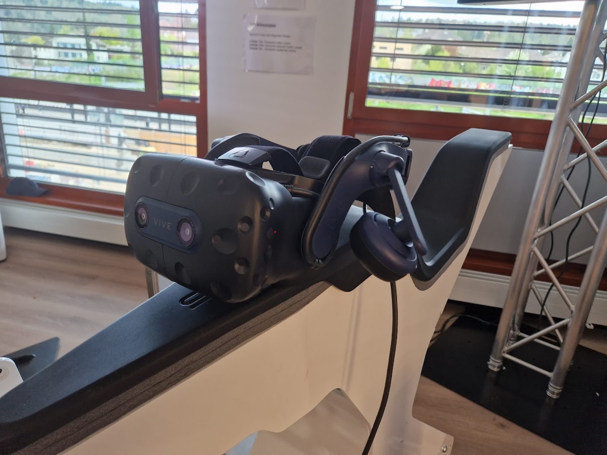 Lieferumfang: Icaros Trainingsgerät, Teppich, Bildschirm zur Übertragung, Computer, VR Brille.
