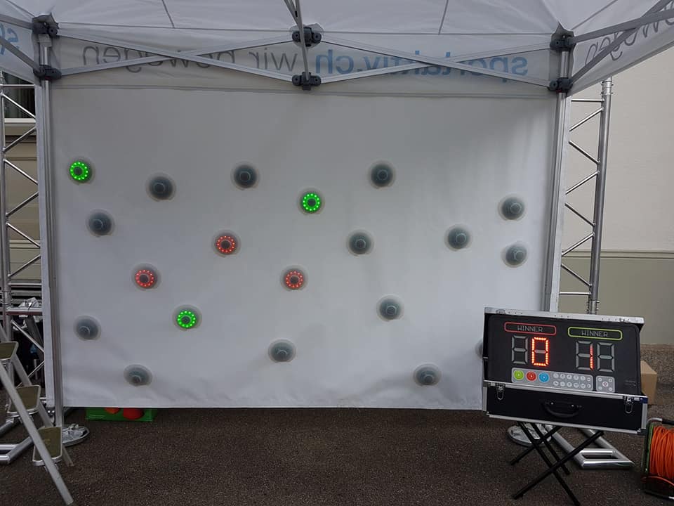 Bilden Sie 2 Teams und finden Sie heraus wer der Schnellste ist. Es treten 2 Spieler gegeneinander an. Es müssen so viele Lichter wie möglich in 45 Sekunden ausgemacht werden.