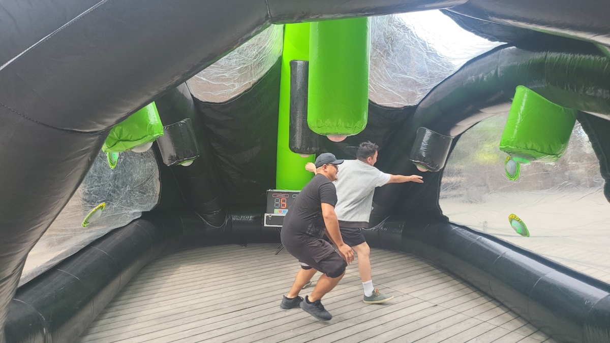 Eine Betreuungsperson sollte bei aufblasbaren Spielgeräten immer zugegen sein. Dies können Sie selber übernehmen oder einfach eine professionelle Betreuungsperson von uns hinzu buchen.