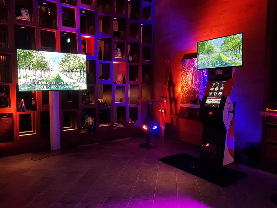 Die Karaoke-Anlage verfügt über zahlreiche hitverdächtige Features, die auf Ihrem Event für ausgelassene Party-Stimmung sorgen werden. Ihre Gäste können ihre Gesangskünste bei über 32.000 Titeln unter Beweis stellen. Die Auswahl der Songs erfolgt über einen 24‘‘-Touchscreen, in dessen Sucheingabe nach bestimmten Titeln oder Interpreten gesucht werden kann. Der Text des ausgewählten Songs erscheint dann auf dem 43‘‘-Monitor, der sich oben auf der Karaoke-Maschine befindet. Über den grossen Monitor können auch die Zuschauer die Textzeilen problemlos mitverfolgen.
