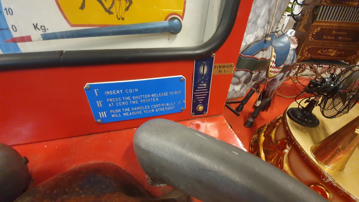 Der Spielautomat, welcher wie ein Boxautomat aufgebaut ist, misst nach Einwurf von Jetons, Münzen oder bei einem Freispiel die Stärke des Spielers.