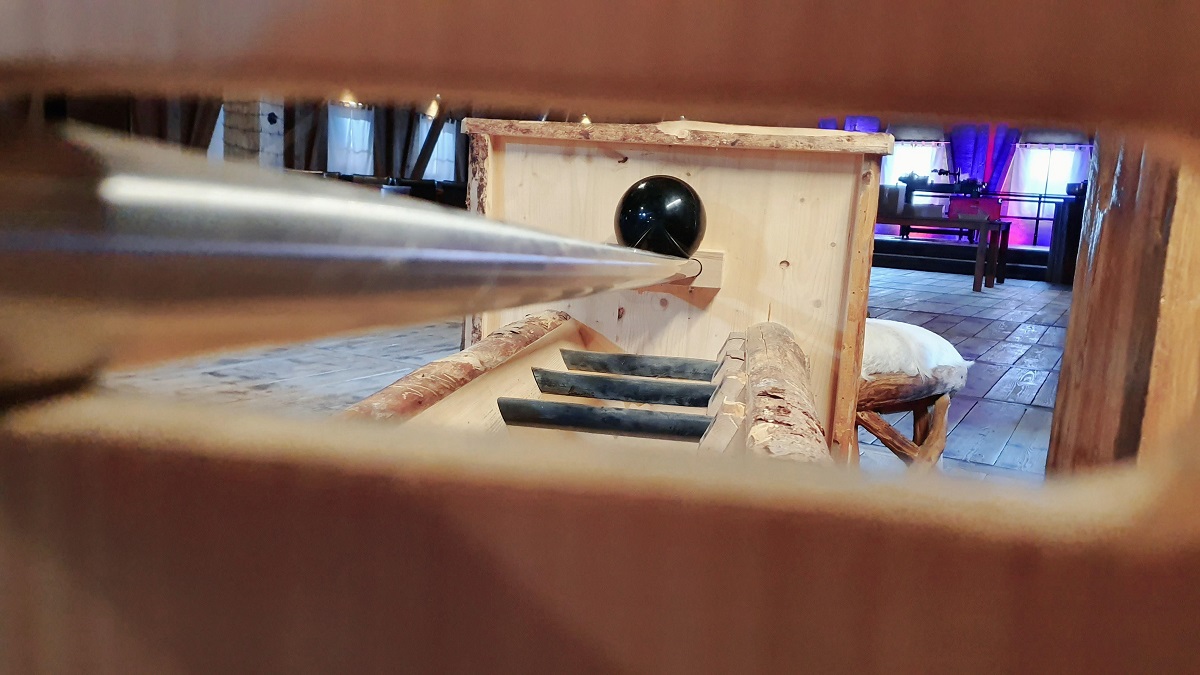 Die handgefertigte Kugelbahn Rollerball ergänzt die Holz- und Bauernspiele von Arena der Wunder. Sie ist unverzichtbare Disziplin jeder Bauernolympiade. Hier sind Geschick und Können gefragt: Wer kann die Kugel am weitesten bergaufwärts bewegen? Durch geschicktes Drücken der Schienen gelingt es ganz einfach. Die Kugelbahn ist eine spannende Attraktion für Kinder und Erwachsene.