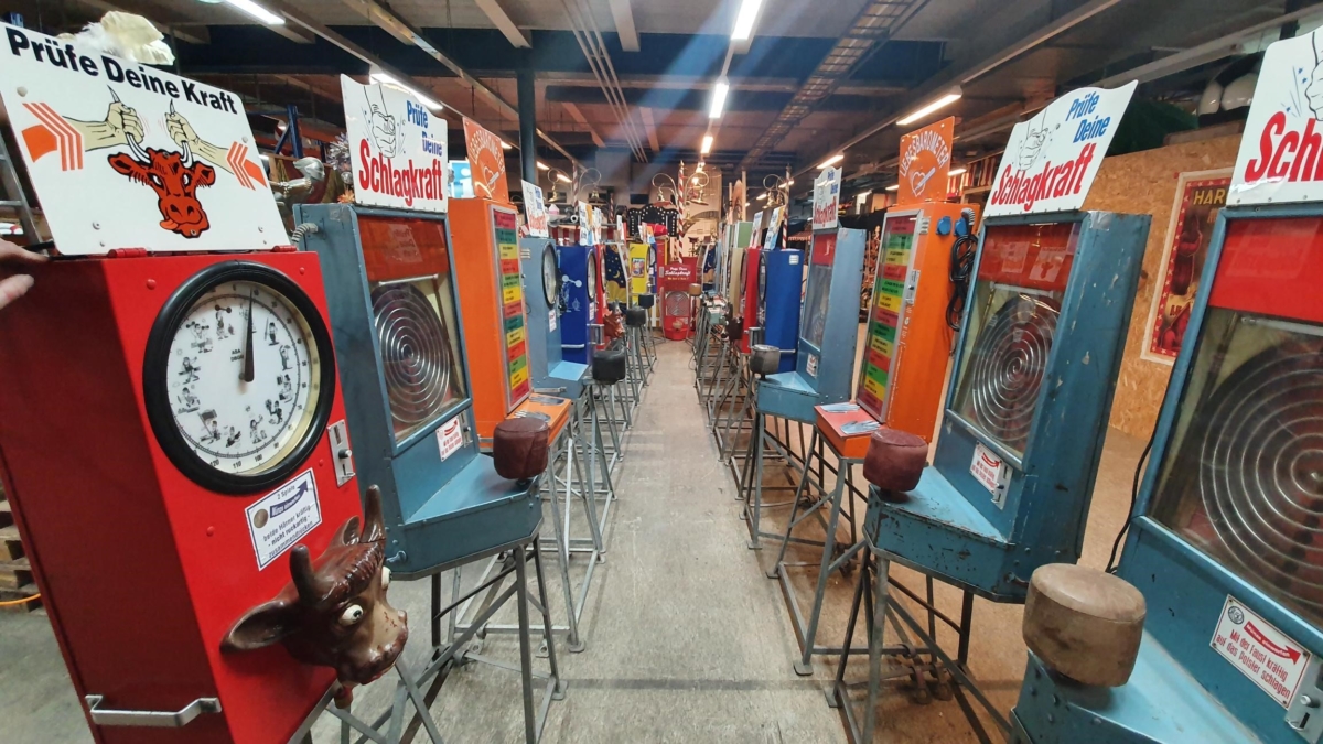 Prüfe Deine Schlagkraft. Dieser original Chilbi Automat aus den 50er Jahren zeigt Ihnen Ihre Schlagkraft. Auch bekannt unter dem Namen Kugelboxer durfte dieser auf keiner Chilbi in den 50er bis 80 er Jahren fehlen. Leider sind diese Geräte heute nur noch selten zu finden. Dank einer der grössten Automatensammlungen können wir Ihnen nun diesen charmanten Chilbi Charakter auch für Ihre Veranstaltung bieten.
