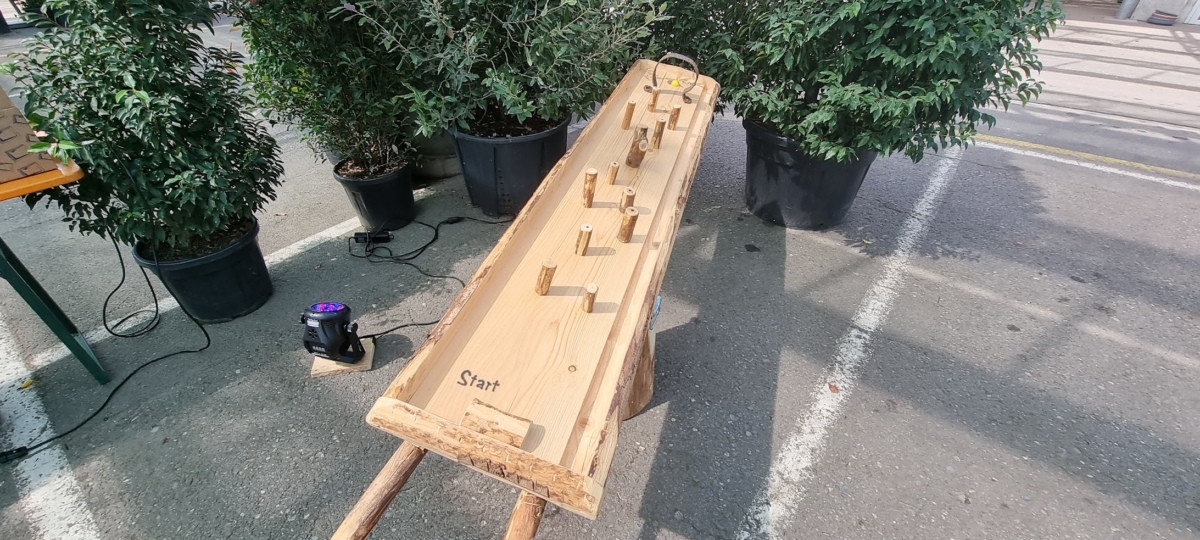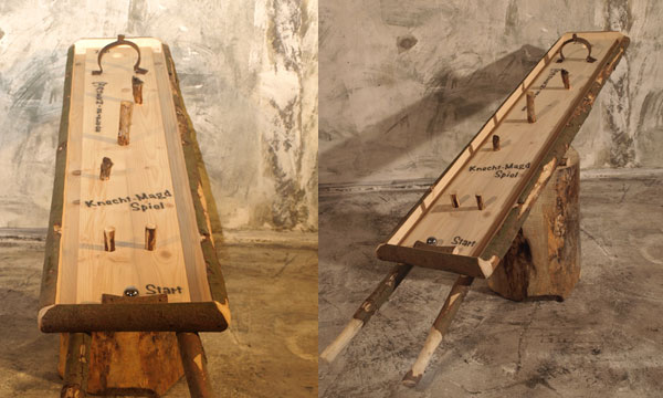 Wer bringt die Kugel ins Ziel? Die handgefertigte Kugelwippe ergänzt die Holz- und Bauernspiele von Arena der Wunder. Damit macht jede Bauernolympiade gleich noch einmal soviel Spass! Geschick und Können sind allerdings gefragt: Die Kugel muss durch trickreiche Hindernisse und vorbei an allerlei Kuriositäten gesteuert werden.