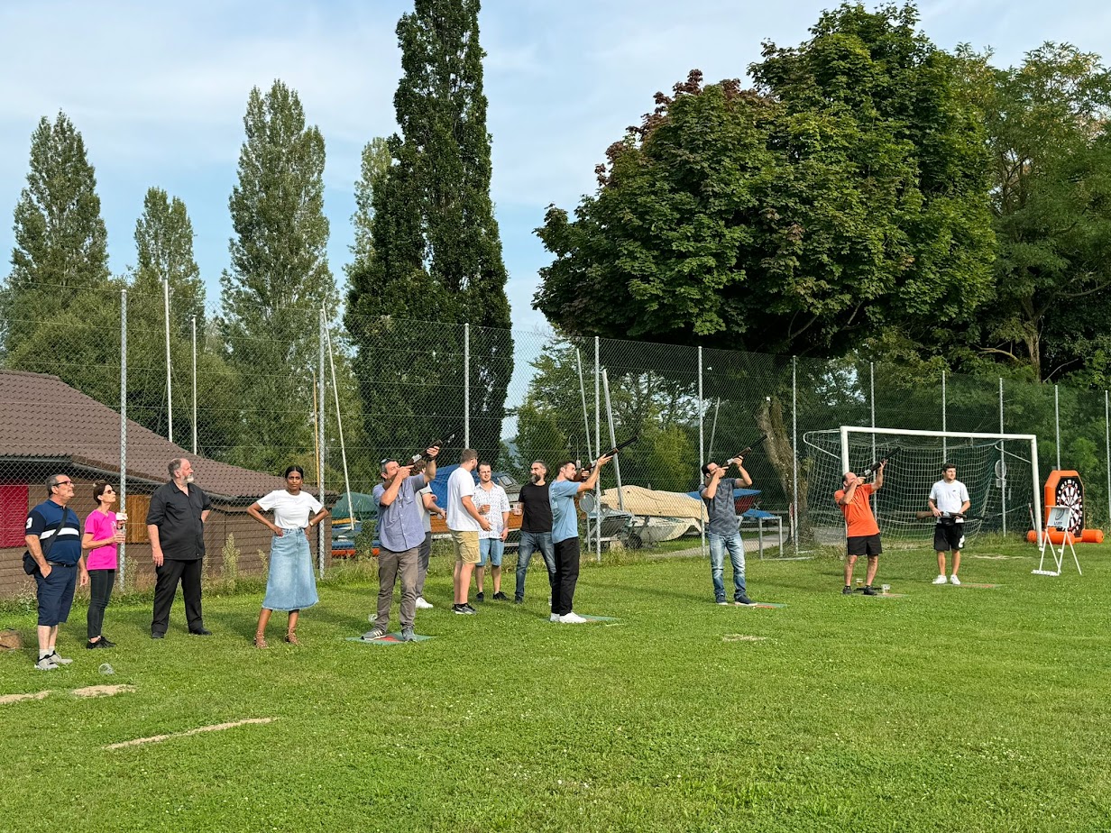 Das Laser Tontauben Schiessen ist ein Schiesserlebnis ohne Risiken und Nebenwirkungen. Da die Gewehre deaktiviert sind und Lasertechnologie zum Einsatz kommt, besteht keine Gefahr für Teilnehmer oder Zuschauer und es gibt keine Altersbeschränkungen. Nutzen Sie jetzt die Gelegenheit und buchen Sie das ultimative Schiesserlebnis für Ihre nächste Veranstaltung!