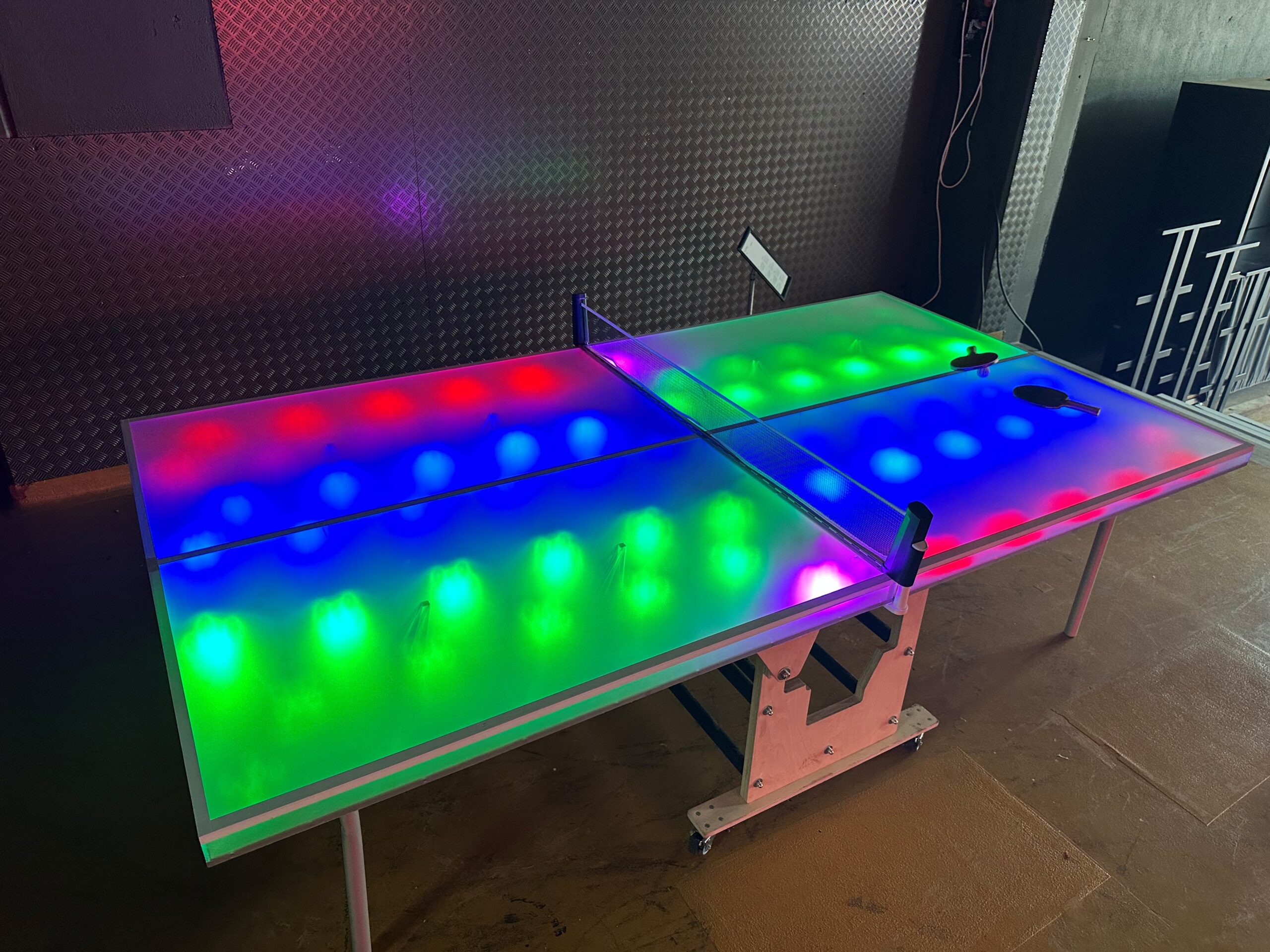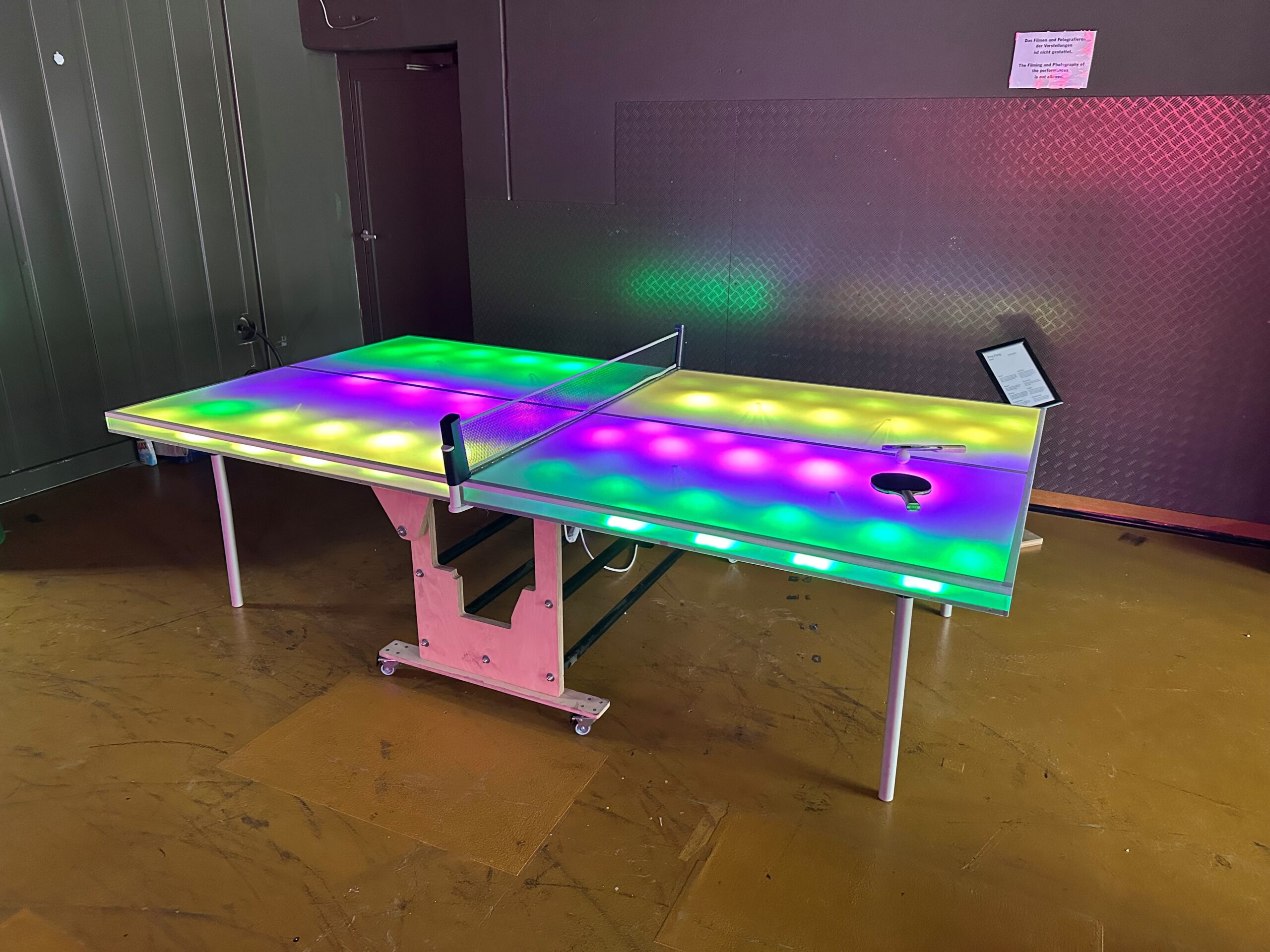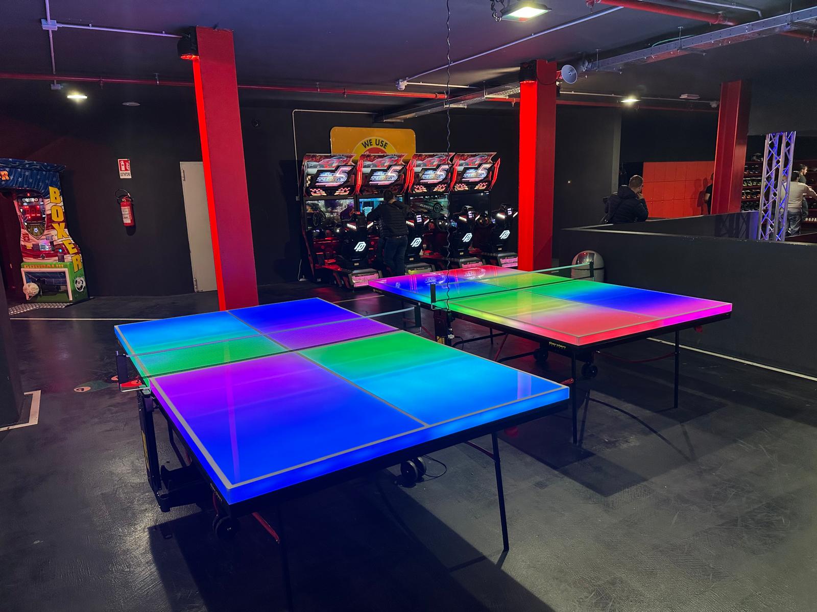 Stylische LED Tischtennisplatte für den besonderen Auftritt. Für 80s revival Party und Neon Events mit WOW Effekt.