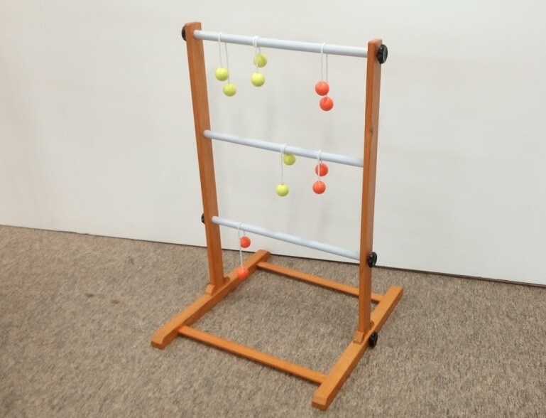 Das neue Spiel rund um die Leiter und die Golfbälle. Werfen Sie abwechselnd möglichst hoch, sodass die Schlinge mit den Golfbällen und die Leiter liegen bleiben…Eine kleine Holzleiter mit drei Stangen und je drei Bolas in unterschiedlichen Farben reichen hier für spannende Partien beispielsweise im Rahmen eines Team-Events.