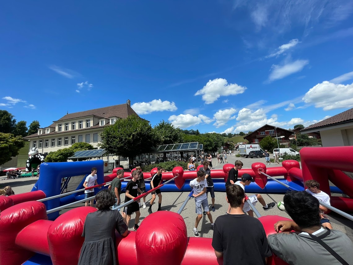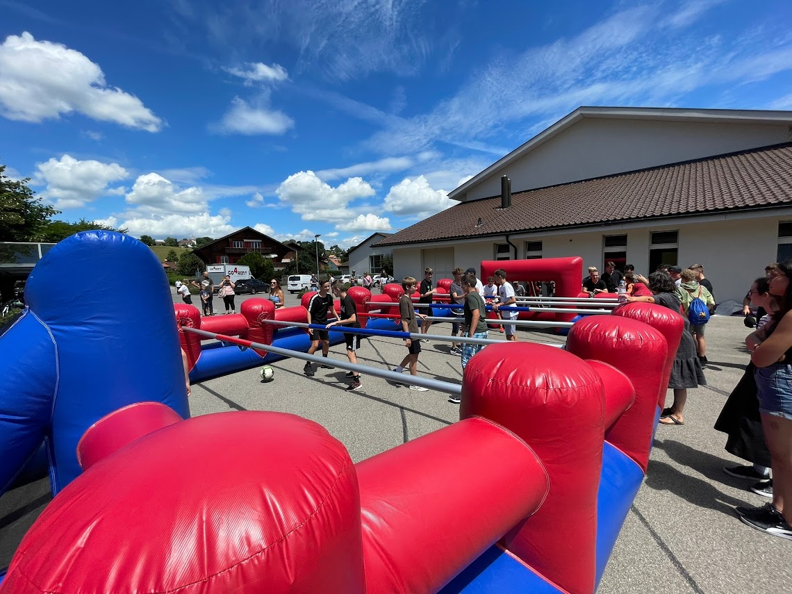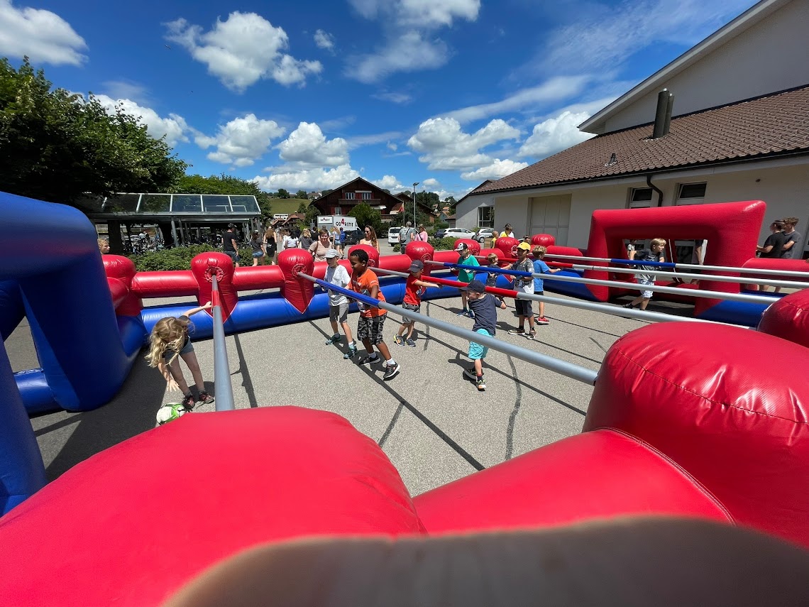 Unter anderem eignet sich der Human Kicker, der in der Schweiz auch als Menschen-Fussballkasten, -Töggelikasten, -Jöggelikasten oder -Töggelichaschte bekannt ist, für unterhaltsame Teamevents.