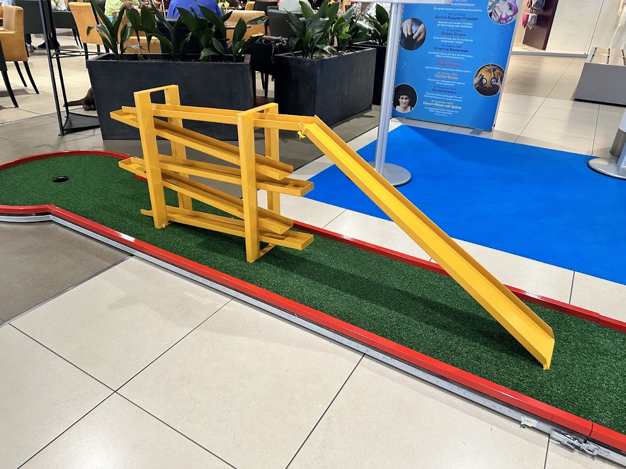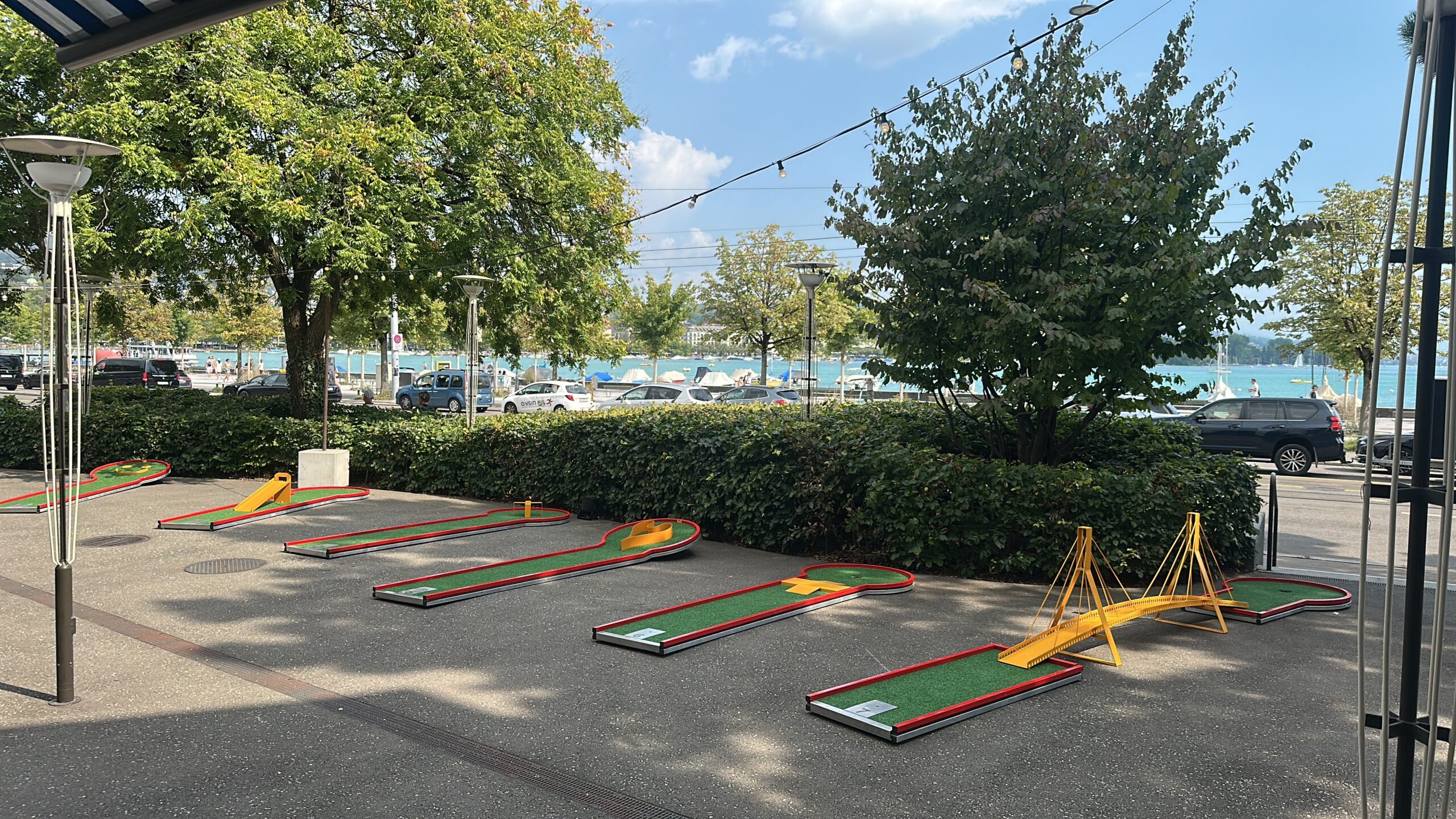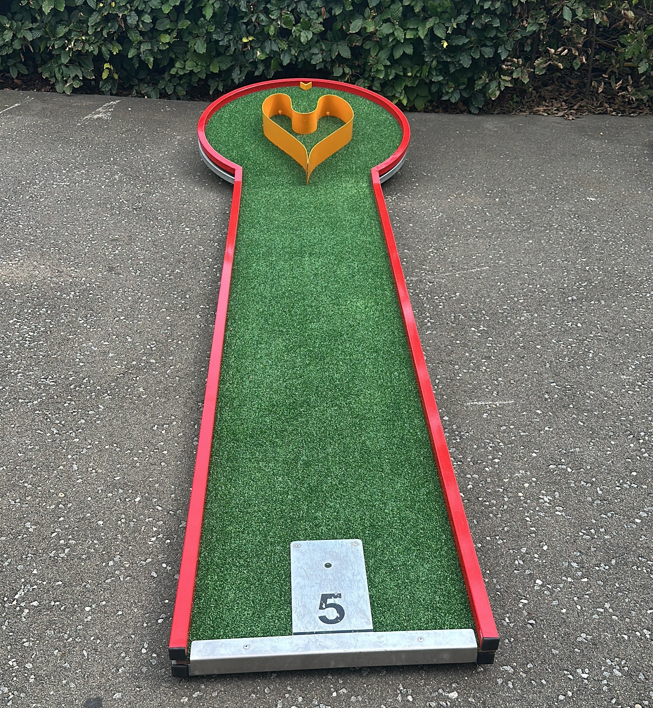 Diese professionelle Minigolfbahn besteht aus bis zu 7 grossen Bahnen mit 330 cm Länge und bis zu 4 Bahnen mit 580 cm Länge.