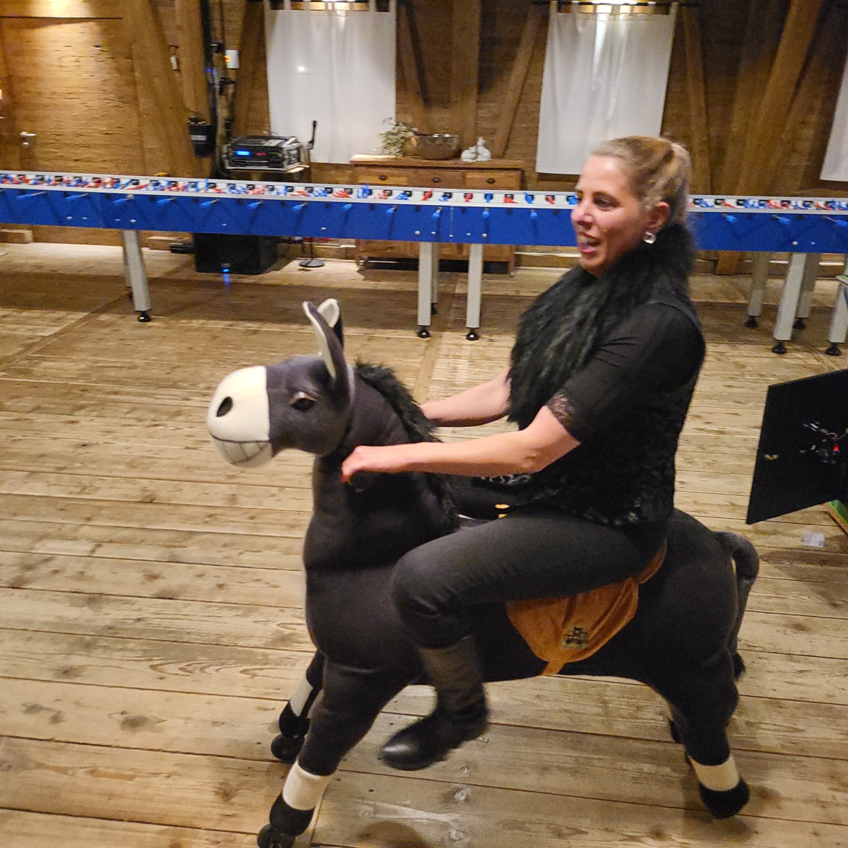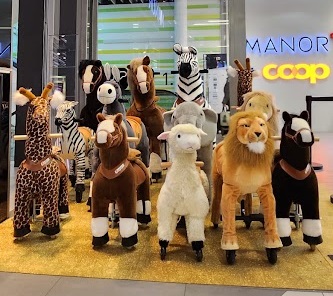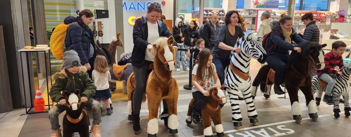 FUN RIDE das ist ultimativer Reitspass mit einzigartig hochwertigen Plüschpferden, auf denen die Kinder richtig reiten können. Mit Freude an spielerischer Bewegung – da sind PC oder Konsole schnell vergessen… Spass und Fitness in einem mit unseren Ponycycle Reittieren. – durch das Auf-und-Ab wird die Rücken-, Bauch- und Beinmuskulatur des Kindes gestärkt und Gleichgewicht und Koordination sanft gefördert. Zur Auswahl stehen Giraffe, Löwe, Tiger, Zebra, Lama, Alpaka, Pferd, Esel und Co. Holen Sie sich Ihren individuellen Reittiere-Zoo auf Ihre Veranstaltung. Die Reitpferde sind in den Grössen S bis XL verfügbar, sodass vom kleinen 2-Jährigen bis zum Erwachsenen mit bis zu 120 Kilo jeder darauf reiten kann.