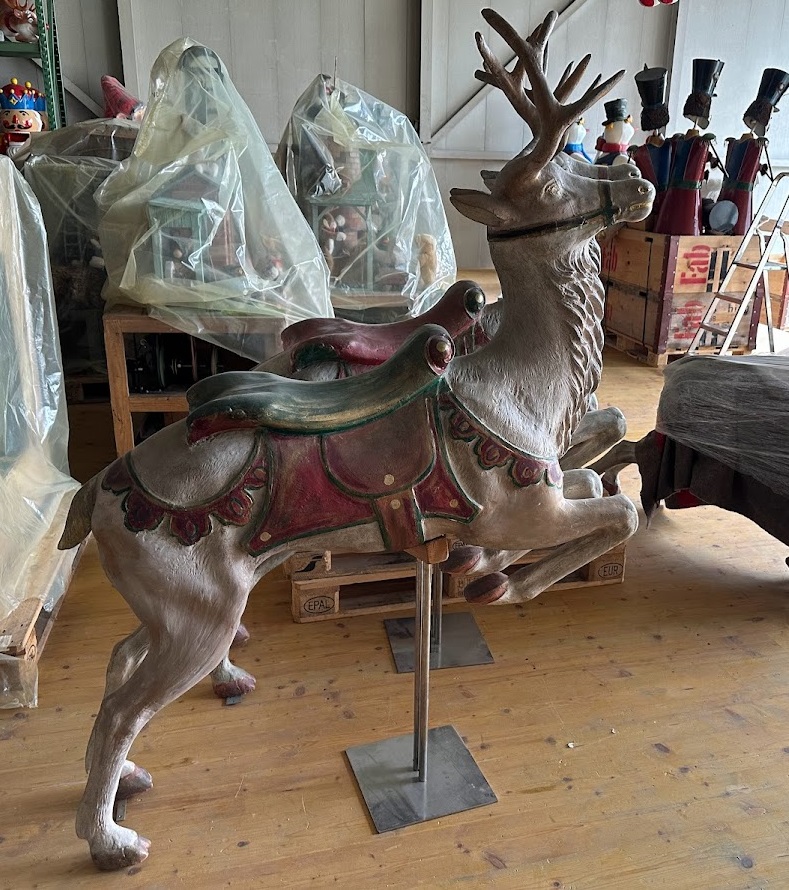 Lebensgrosse, fliegende Rentiere aus GFK.