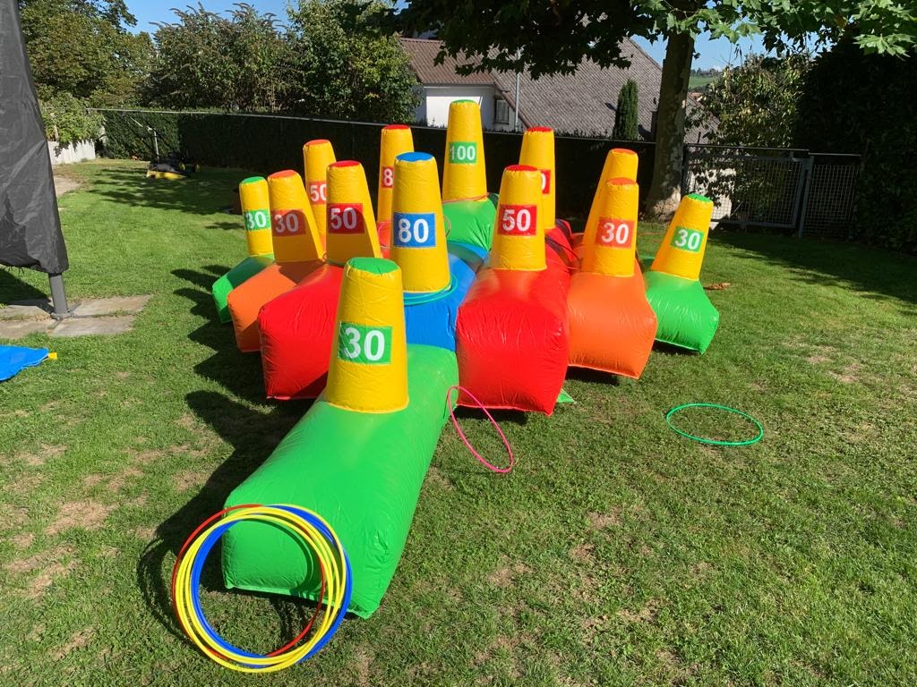 Begeistern Sie Ihre Gäste mit unserem aufblasbaren Ringewurfspiel! Diese unterhaltsame und interaktive Attraktion ist perfekt für Veranstaltungen aller Art, von Firmenfeiern über Schulfeste bis hin zu Familienfesten. Unsere aufblasbaren Ringewurfspiele sorgen für stundenlangen Spass und bringen eine spannende Herausforderung für alle Altersgruppen. Ein einfacher, aber optisch wirkungsvoller Spieleklassiker. Schnell auf und abgebaut.