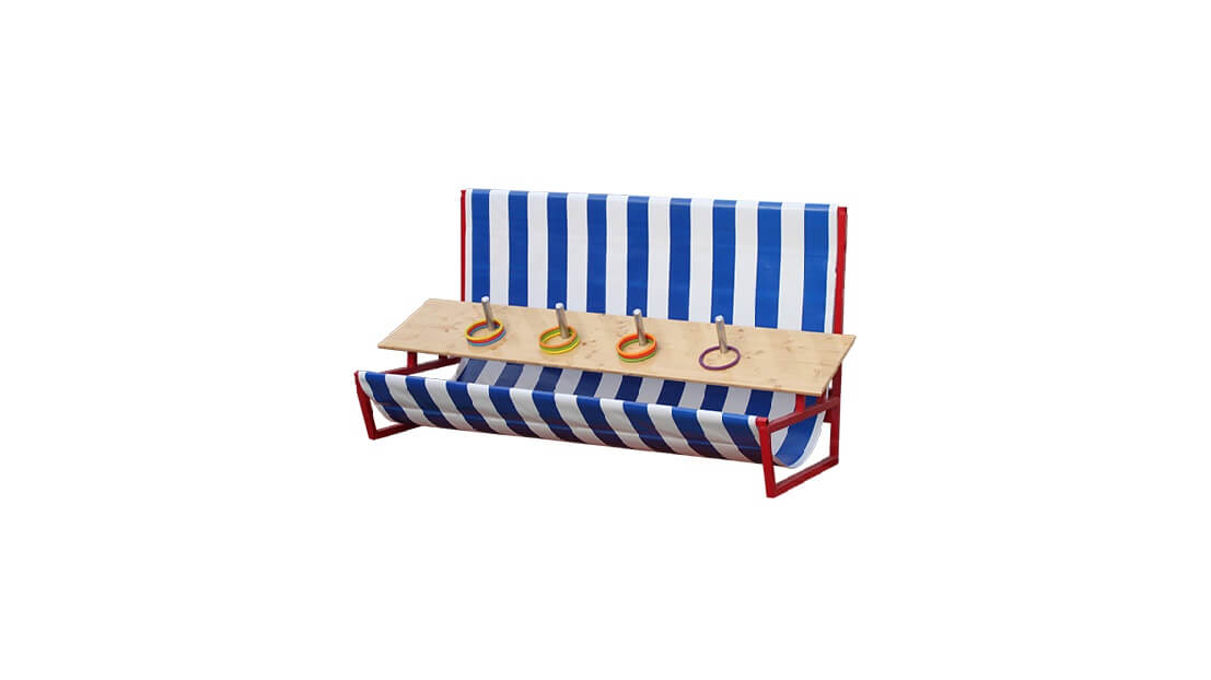 Hier mieten Sie nur den Aufsatz mit den Ringen für das Ringwerfen-Spiel. Einfach auf einer Festbank oder Tisch gestellt und los geht es!