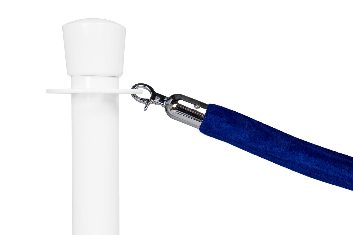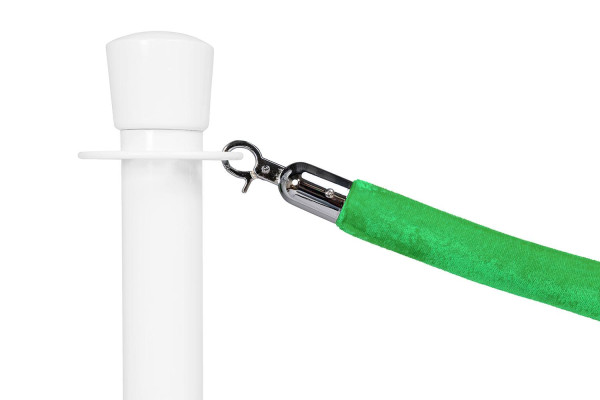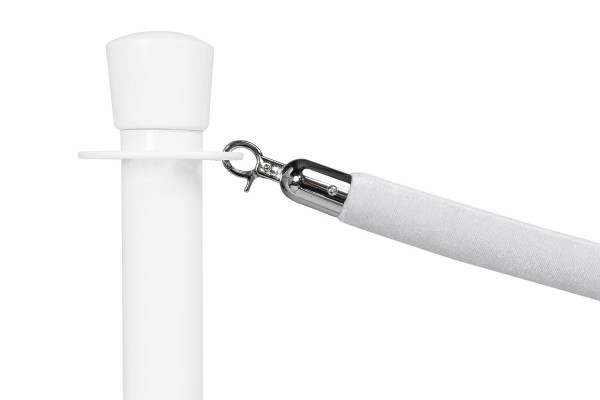 Wir bieten für unsere silbernen, weissen oder schwarzen Abgrenzungsständer die passenden Velours Kordeln mit silbernem Beschlag in folgenden Farben an: