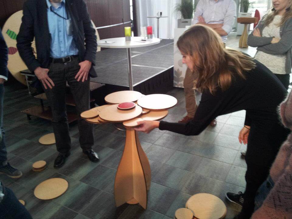 Hier sind ebenfalls ein ruhiges Händchen, Planung und Konzentration Voraussetzung…Nach bestimmten Regeln werden verschieden grosse Scheiben auf dem Baum getürmt…aber Vorsicht, wenn er kippt gibt es nur Punkte für die andere Gruppe!