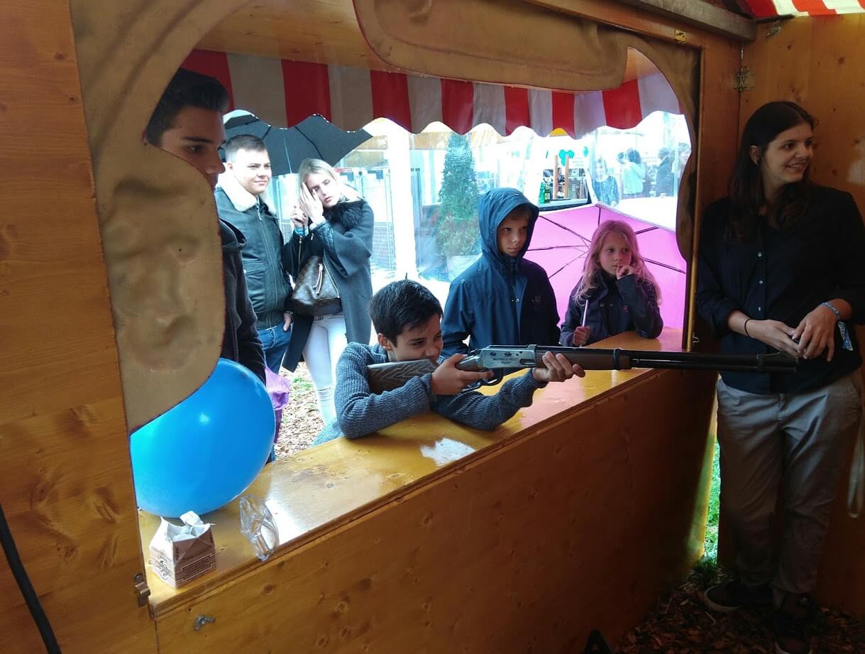 Wir haben in unserer Nostalgie Schiessbude eingebaute Ziele. Unter anderem Wilde Eber, Zielscheibenschiessen, Hände abschiessen, Sternewand, Röhrchen schiessen mit Preisen.