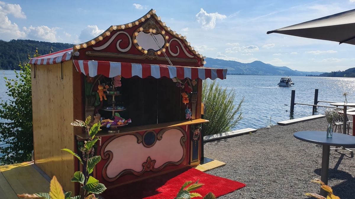 Der beleuchtete und dekorierte Schiessstand ist regenfest und abschliessbar. Der ganze Stand ist komplett zerlegbar und kann somit an Ihrem Wunschort aufgestellt werden.