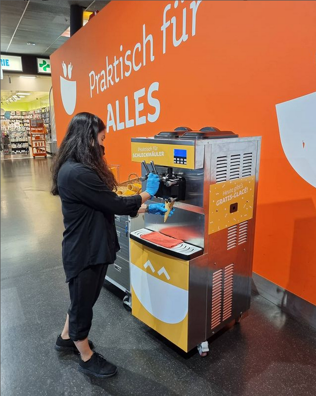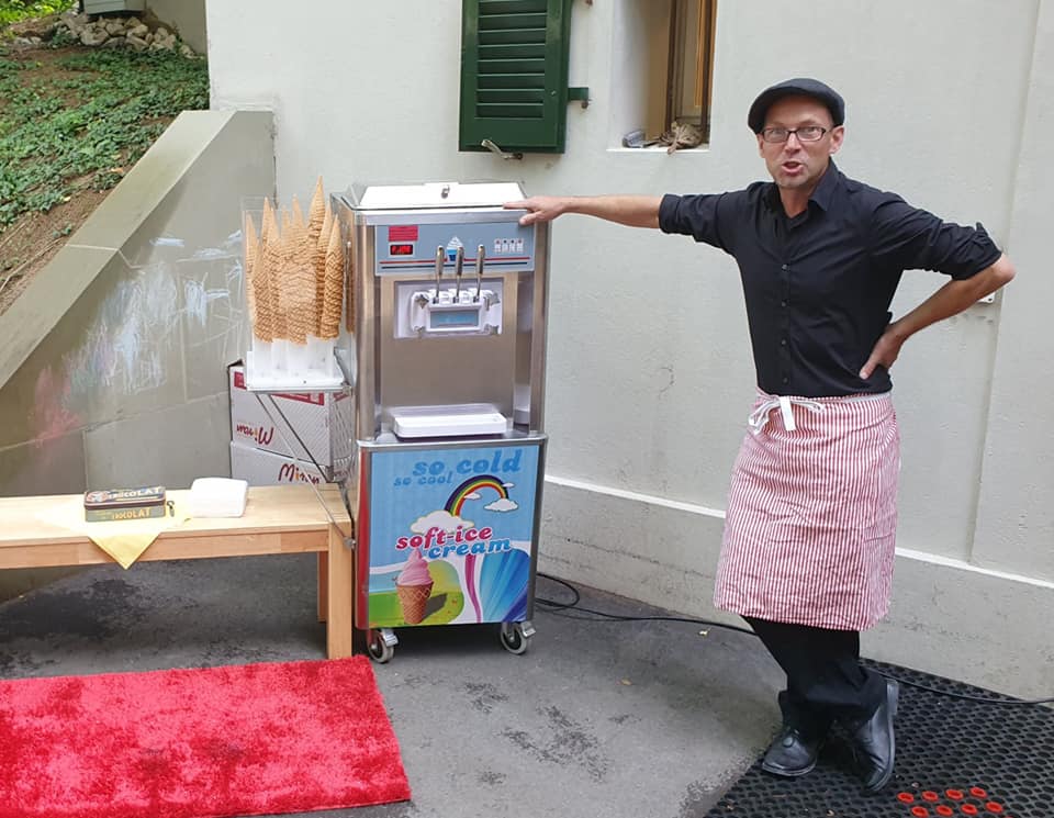 Unsere hochwertige Softeismaschine ist genau das Richtige für heisse Sommertage! Denn wenn die Sonne vom Himmel strahlt, schmeckt cremiges Softeis am besten und bietet eine willkommene Abkühlung auf Ihrer Veranstaltung. Ihre Gäste werden sich freuen, wenn sie eine der zwei verschiedenen Softeis-Sorten aus unserer Maschine geniessen können.