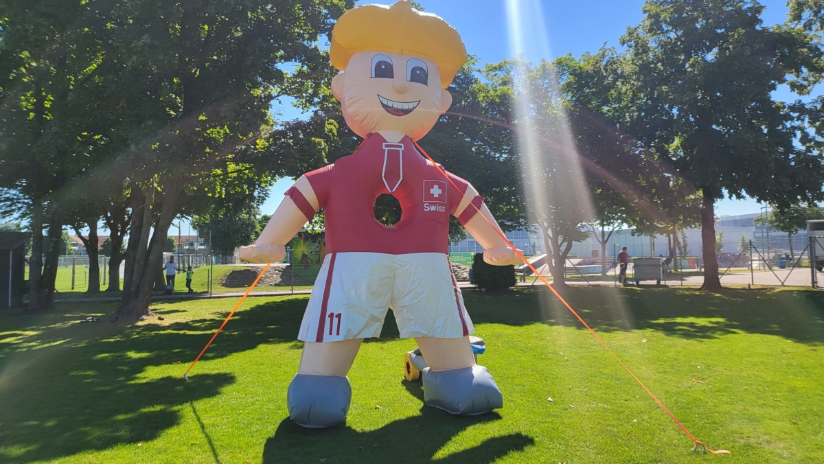Dieser aufblasbare knapp 4 Meter hohe Schweizer Fussball Nationalspieler Torwart sorgt schon von weitem für Aufsehen. Ziel ist es aus 10 Metern Entfernung mit jeweils 4 Versuchen, so oft als möglich durch die Krawatte zu schiessen. Jetzt buchen und das Spiel beginnen!