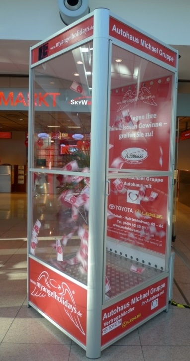 Unsere hochwertige Wirbelwind Box im exklusiven Edelstahl-Design. Die Teilnehmer steigen in die transparente Box und versuchen einen der wild umher wehenden Gutscheine, Tickets oder Lose in der Cashbox zu fangen. Auch nach Anzahl der gefangenen Scheine kann der Gewinn festgelegt werden, die Zeit der Teilnehmer ist einstellbar von 10 bis 60 Sekunden.