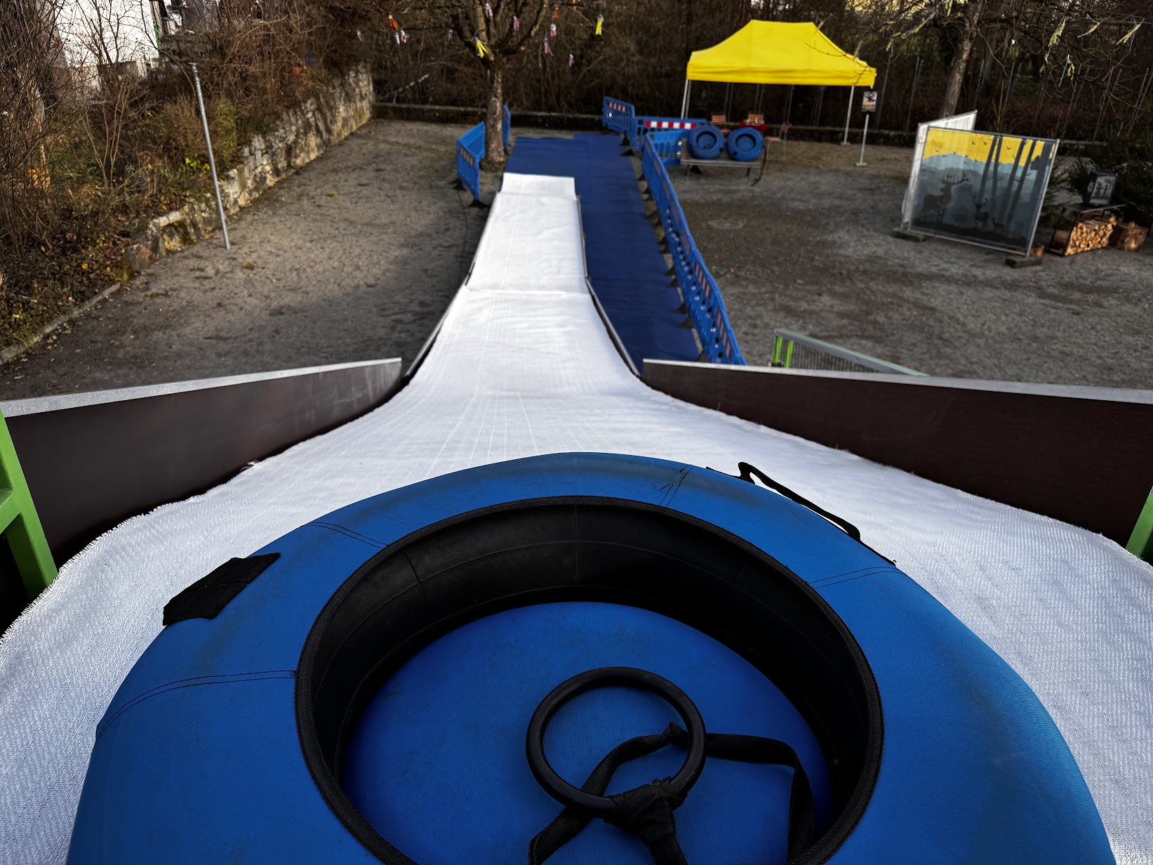 Unsere mobile Tubing Bahn bringt überall jede Menge Aufmerksamkeit. Ein riesen Spass für die ganze Familie. Dank des speziellen Belags können hier die Teilnehmer ganzjährig rodeln. Egal ob es regnet, schneit oder die Sonne scheint, unsere Rodelbahn ist immer einsatzbereit. 1 Animateur hilft oben beim Einstieg in die Tubes und sorgt dafür, dass die Tubes immer bereit sind.