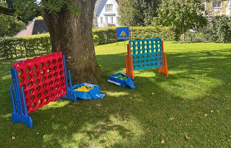 Einfach riesig! Spielen Sie den Klassiker im Grossformat! Bei dem Zwei-Personen-Strategiespiel hat derjenige gewonnen, der als Erster vier der eigenen Steine in eine Reihe gebracht hat. Schaffen Sie das? Kombinieren Sie es mit herkömmlichen Modulen oder bauen Sie ein “Riesen”-Event, beispielsweise mit XXL-Hütchenspiel, XXL-Jenga, XXL-Mikado oder dem Human Table Soccer.