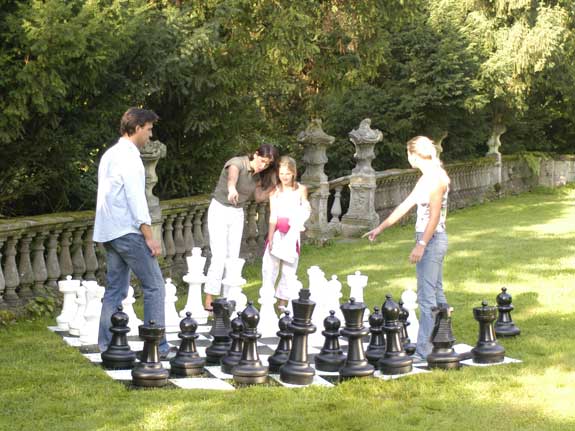 Schach das beliebte Strategiespiel mit seinen lebensgrossen Figuren im XXL Format. An dieser Riesenvariante findet jede Altersgruppe Spass – vorausgesetzt man beherrscht die Spielregeln.