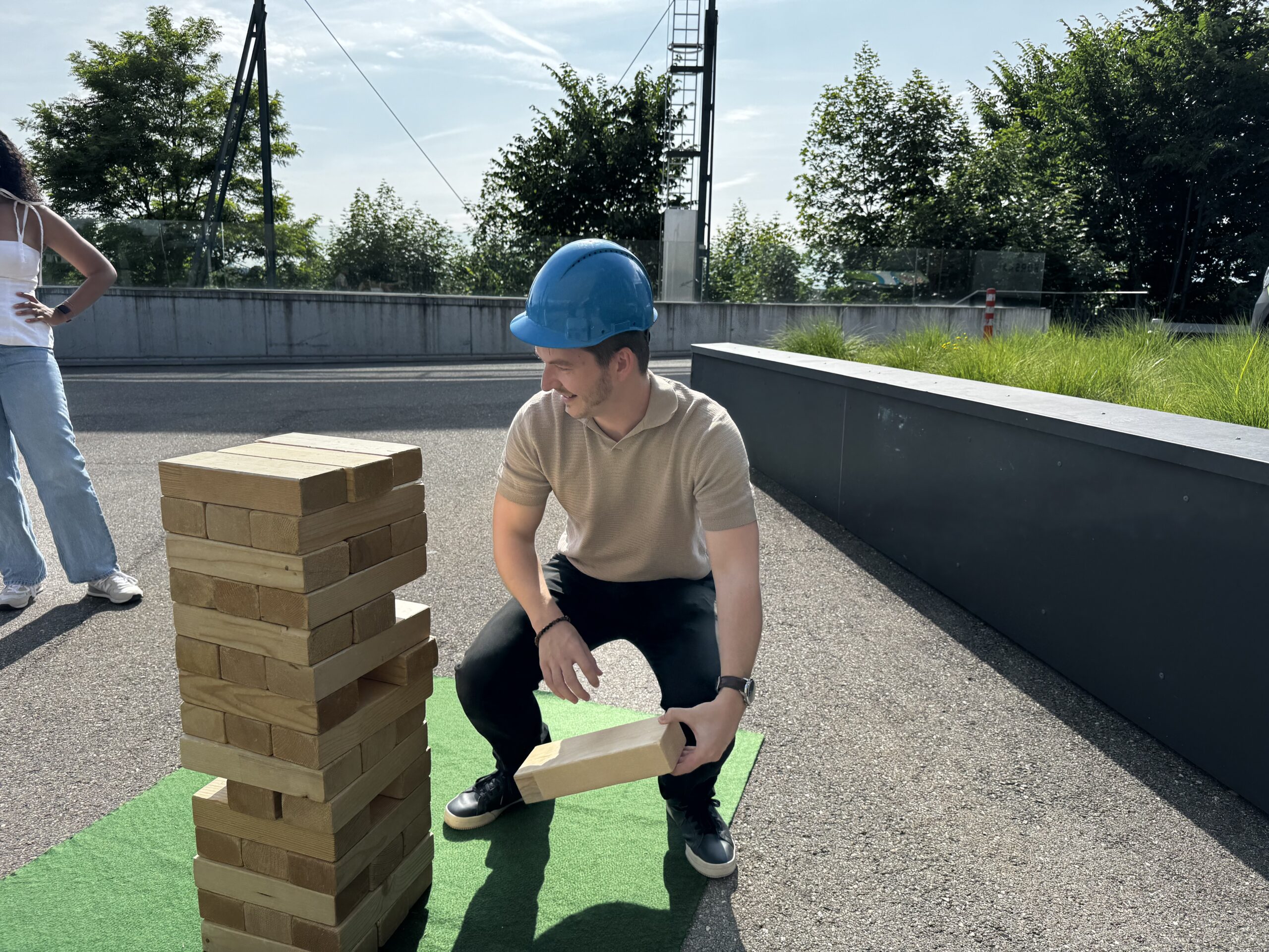 Wenn Sie unser Riesen-Jenga mieten, ist ein grosser Teppich als Unterlage im Preis inbegriffen. Auf Anfrage stellen wir Ihnen einen Zaun zur Verfügung, mit dem Sie den Spielbereich abtrennen können. Zudem besteht die Option, die einzelnen Bausteine des XXL-Jenga individuell zu branden.